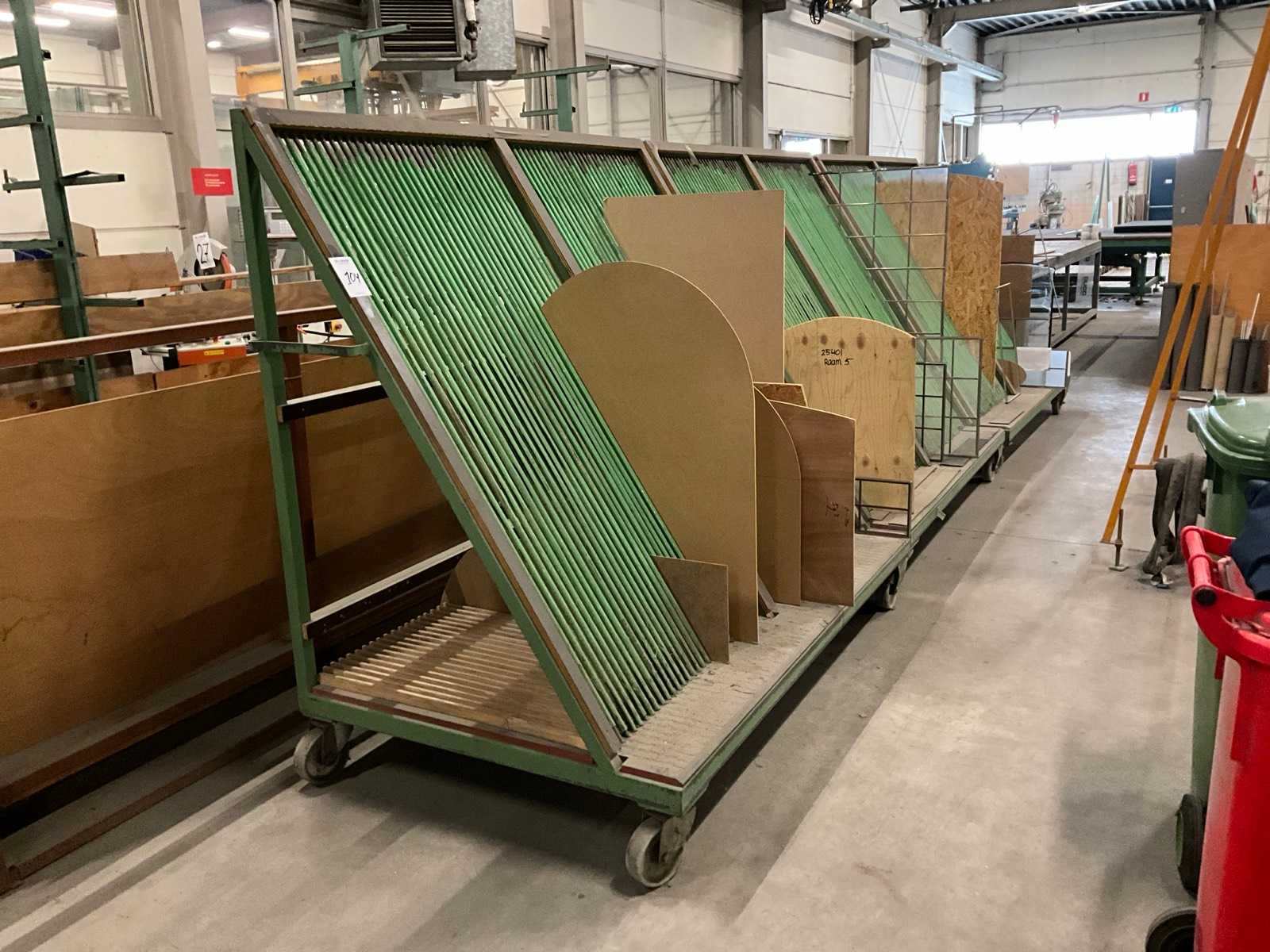 Steel frames equipped with 2 fixed wheels and 2 swivel wheels. Threaded rods with rubber with 15 mm spacing, contents included Auction-ID: A1-44279-104