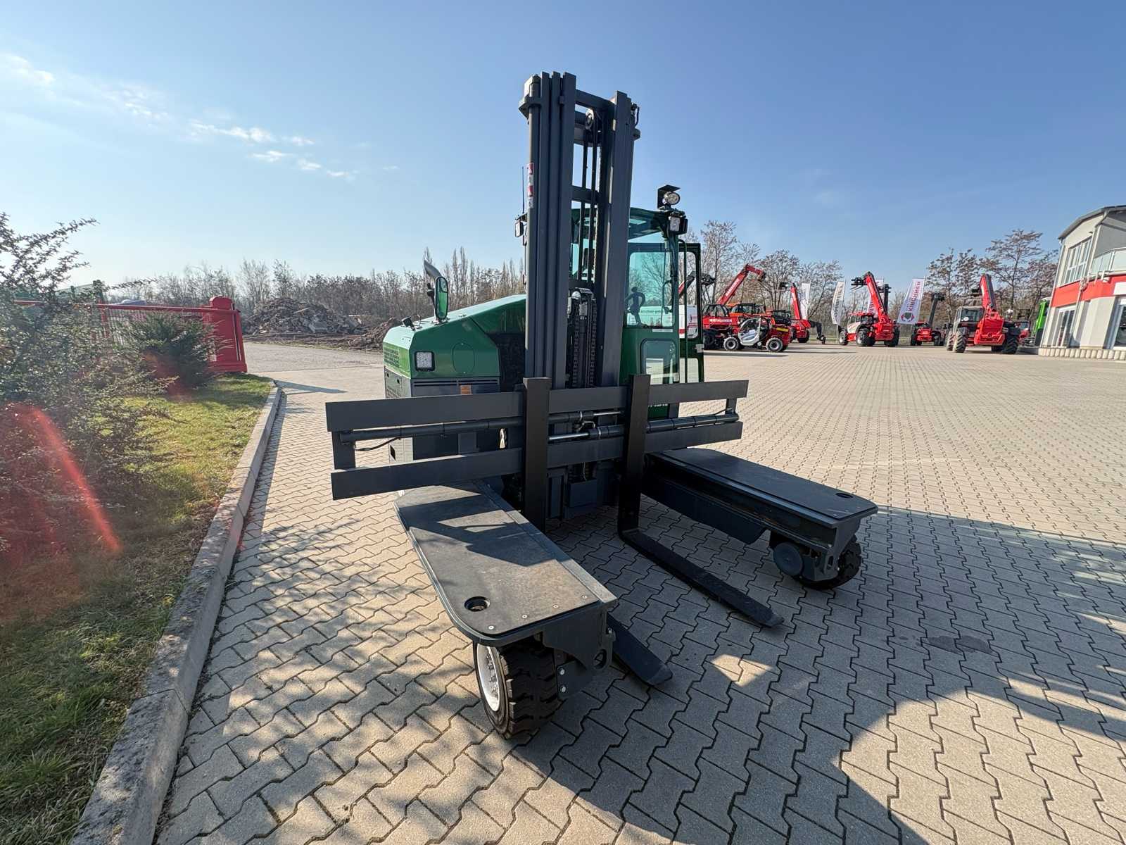 Vehicle data: Manufacturer: Combilift Type: C5000MK4/120/63TR Type: Four-way sideloader Drive type: Diesel Load capacity: 4400 kg Year of construction: 2024 Length: 2700 mm Overall width: 3100 mm Net weight: 6950 kg ISO class: ISO class 3 = 2,500 - 4,999 kg Mast data Mast Type: Triplex Lifting height: 6352 mm Overall height: 2967 mm Free Lift: 1996 mm Fork length: 1200 mm Fork width: 150 mm Fork thickness: 50 mm Fork carriage: 3100 mm Engine and Co. Drive: Kubota V2403TE Battery: 2024, 12V, 80 - 100% Description and equipment Front tyres: Superelastic Front tire size: 450x200 Front Tire Condition: 80 - 100% Rear tires: Superelastic Rear tire size: 720x295 Rear Tire Condition: 80 - 100% Tech. Condition: New Optical Condition: New Attachments: - Fork positioner Attachments: 3100 mm tine adjustment Special equipment: - 3rd valve - 4th valve - Rear work lights - Front work lights - Hea ...