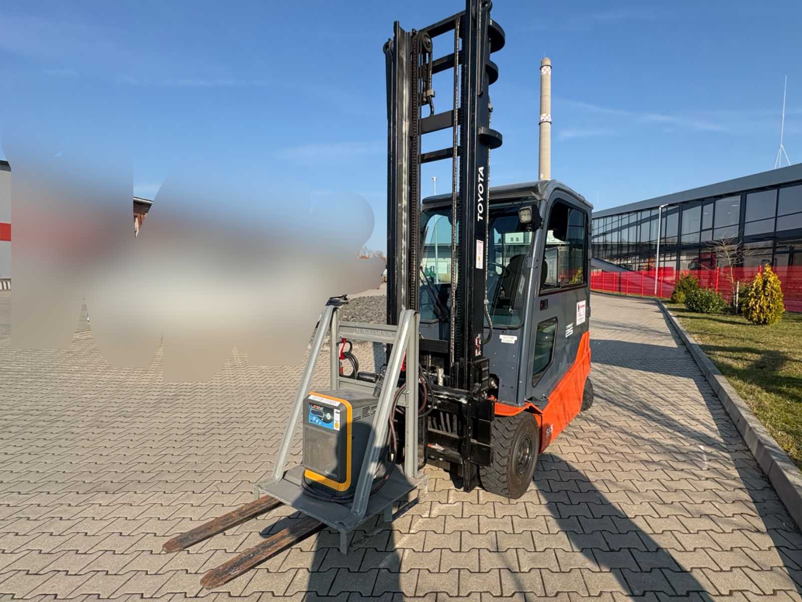 Vehicle data Manufacturer: Toyota Type: 8FBMT25 Type: Electric 4 Wheel Forklift Drive type: Electric Load capacity: 2500 kg Year of Make: 2017 Hours: 8732 Length: 2429 mm Overall width: 1195 mm Net weight: 4809 kg ISO class: ISO class 2 = 1,000 - 2,500 kg Mast data Mast Type: Duplex Lifting height: 4500 mm Overall height: 3085 mm Free lift: 120 mm Fork length: 1200 mm Fork width: 100 mm Fork thickness: 40 mm Fork carriage: 1070 mm Motor, Battery & Charger Battery: Hawker, 2022, 80V, 700Ah, 40 - 60% Description & Optional Equipment Front tyres: Superelastic Front Tire Size: 23x9-10 Front Tire Condition: 80 - 100% Rear tires: Superelastic Rear tire size: 18x7-8 Rear Tire Condition: 80 - 100% Tech. Condition: good Optical condition: good Facilities Attachments: - Sideshift Special equipment: - 3rd valve - 4th valve - Rear work lights - Front work lights - Heating - Full cabin - CE certifi ...