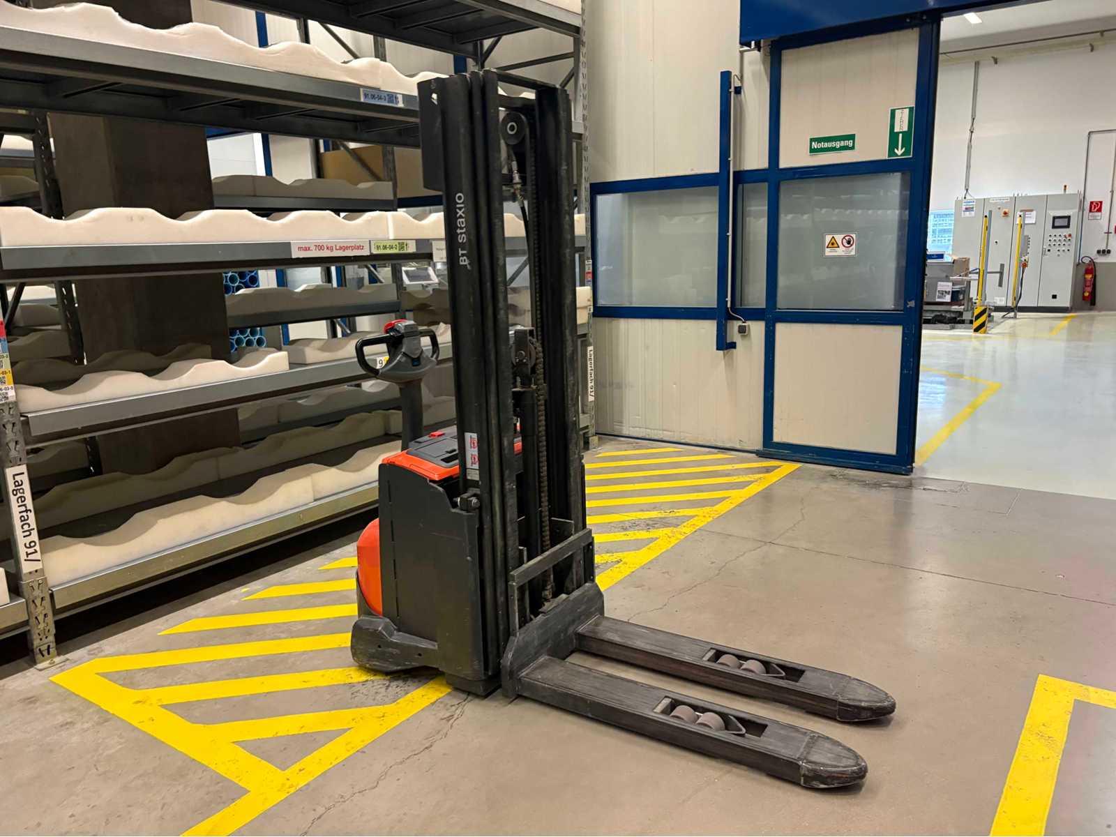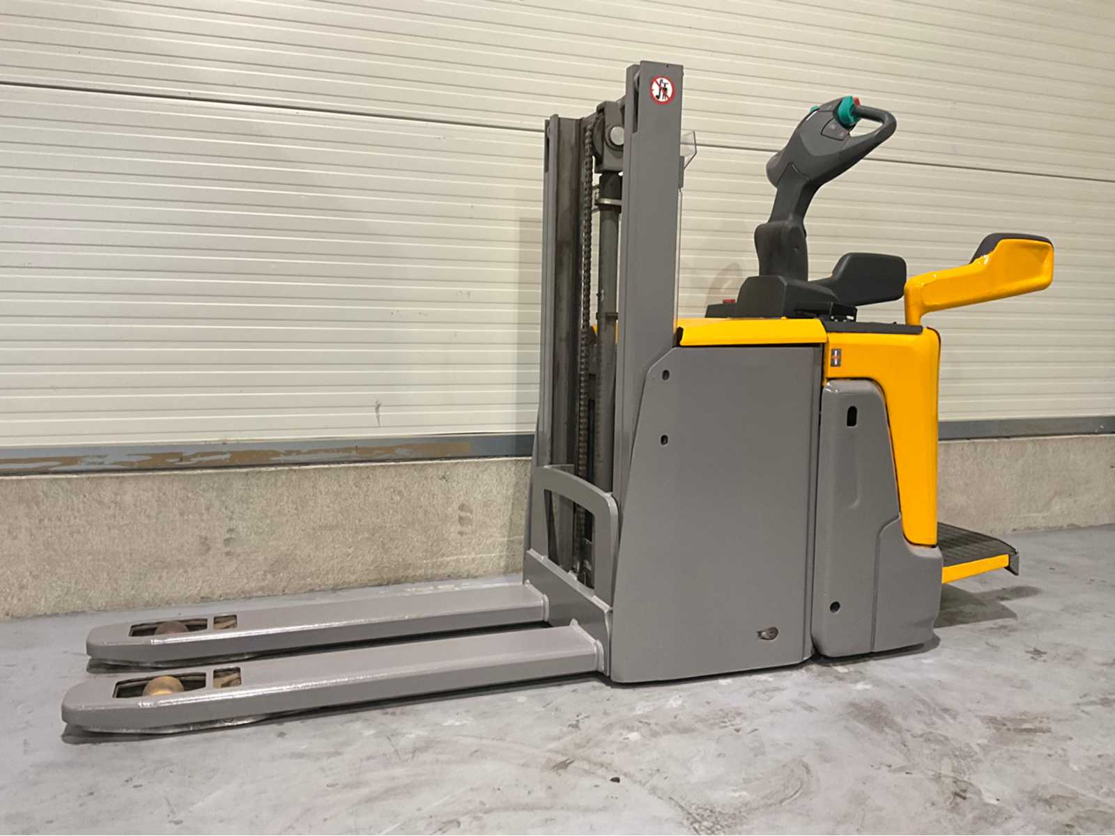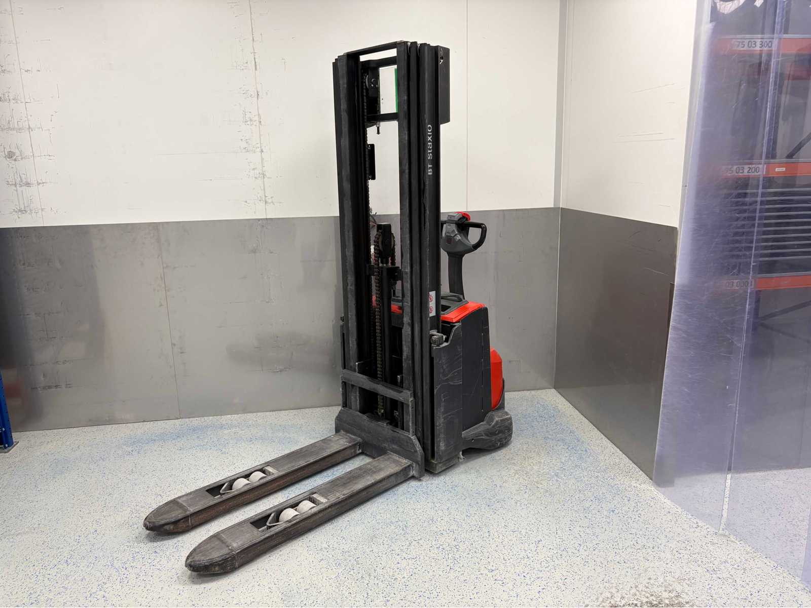 Battery electric pedestrian powered stacker truck, max lift height 4.45m, capacities up to 1400kg @ 600mm load centres , S/N 6457651 (2016), battery non-operational Battery requires replacing, but including a battery charger Auction-ID: A1-45187-87
