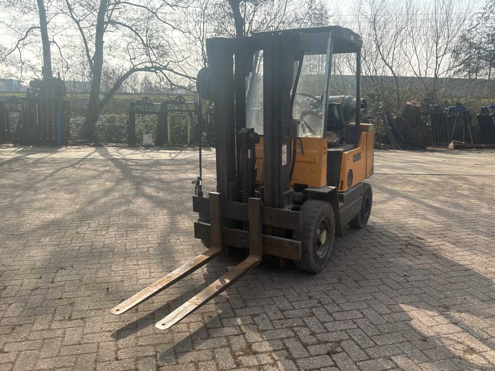 This Almocar LPG forklift is a solid forklift for use in warehouse, workshop or outdoor area. The machine runs on LPG, which ensures relatively low fuel costs and fewer emissions than diesel. With only 4,072 operating hours, this forklift has limited use for its age. Equipped with a robust lifting mast and forks, ready for daily lifting and transport work. Auction-ID: A3-43501-10559