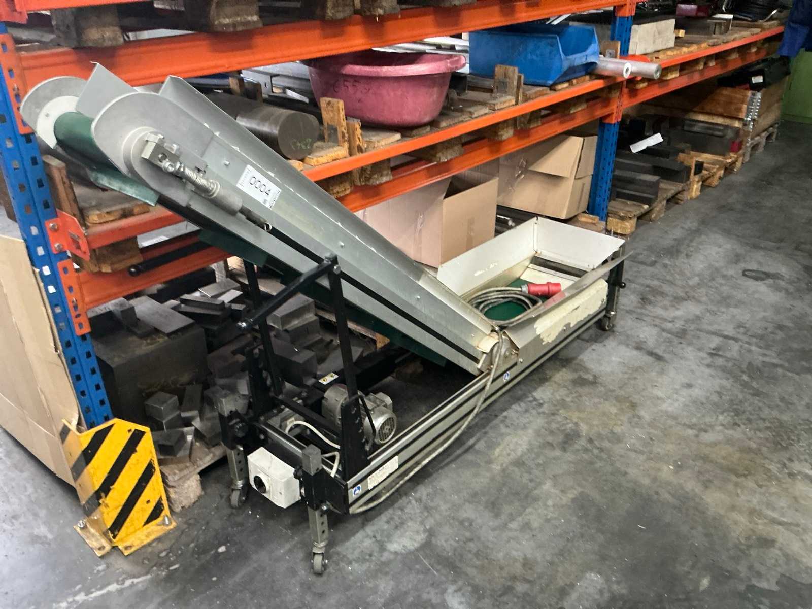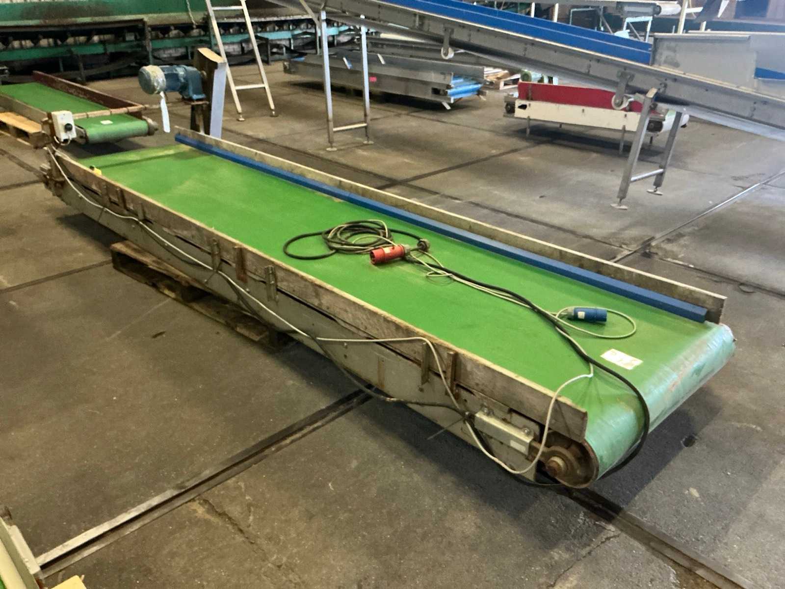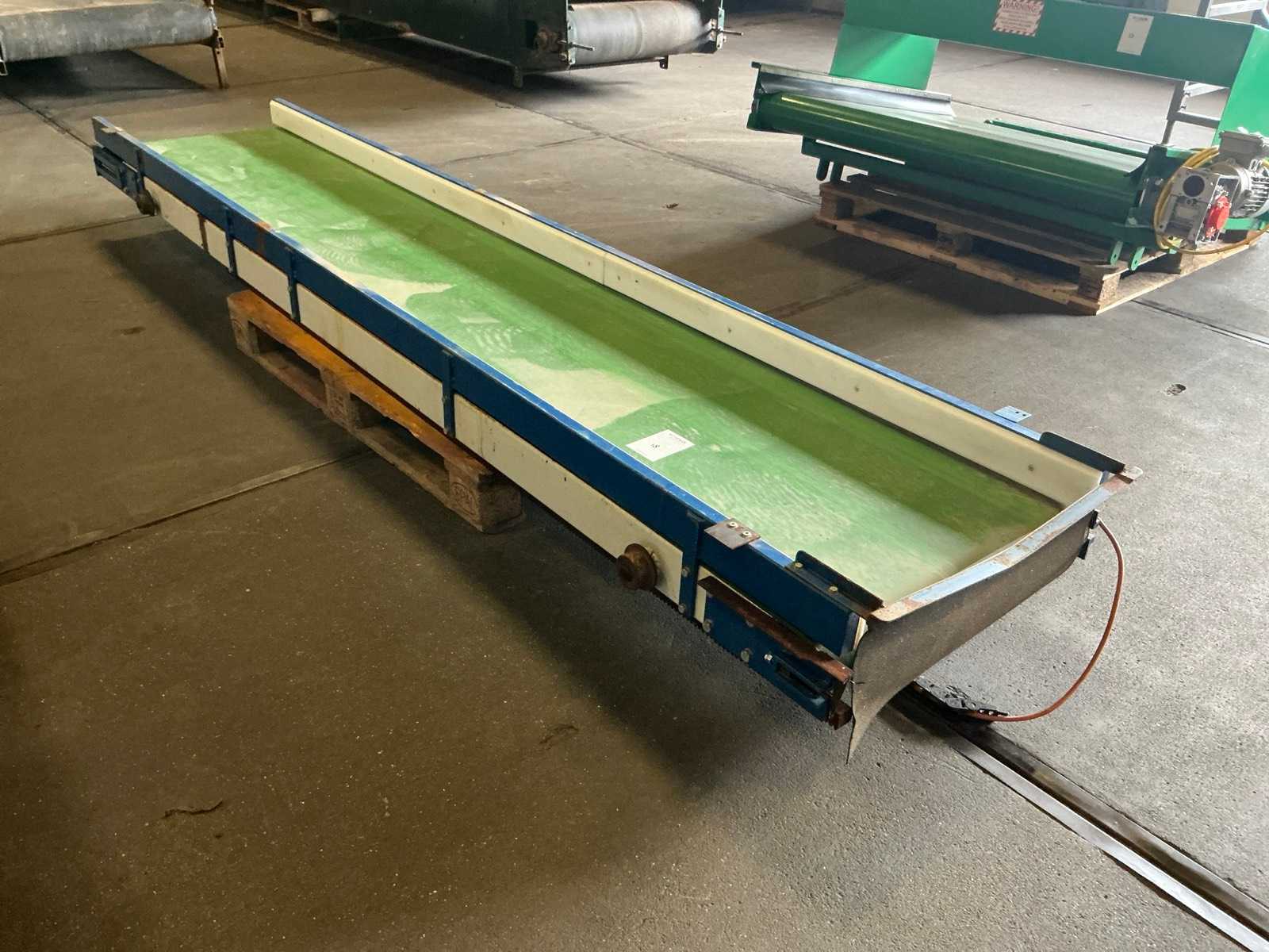 Technical data (according to nameplate and manufacturer's specifications): • Conveyor belt manufacturer: SOCO SYSTEM, Denmark • Conveyor type: belt conveyor with belt • Propulsion: Nerimotori T71B4 electric motor (newly replaced) • Motor power: 0.37 kW • Speed: approx. 1370 rpm at 50 Hz • Voltage: 230/400 V – 50 Hz, three-phase motor (IP 55, protection class F) • Conveyor belt width: 500 mm • Conveyor belt length: 7500 mm • Net weight: approx. 60kg Equipment & Features: • Solid metal frame with bolted side panels for high stability • Conveyor belt made of resistant material (plastic or rubber belt), durable and easy to clean • Newly installed Nerimotori motor for reliable continuous operation and long service life • Compact design for flexible integration into production and packaging lines • Note: Delivery does not include feet, these are not ...