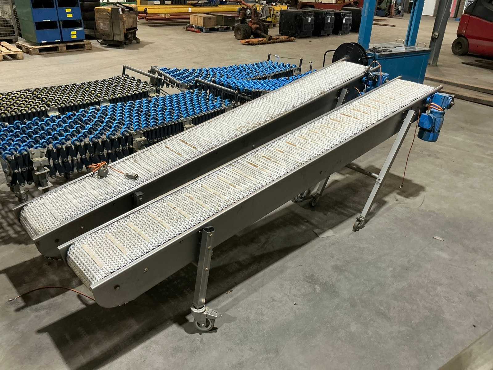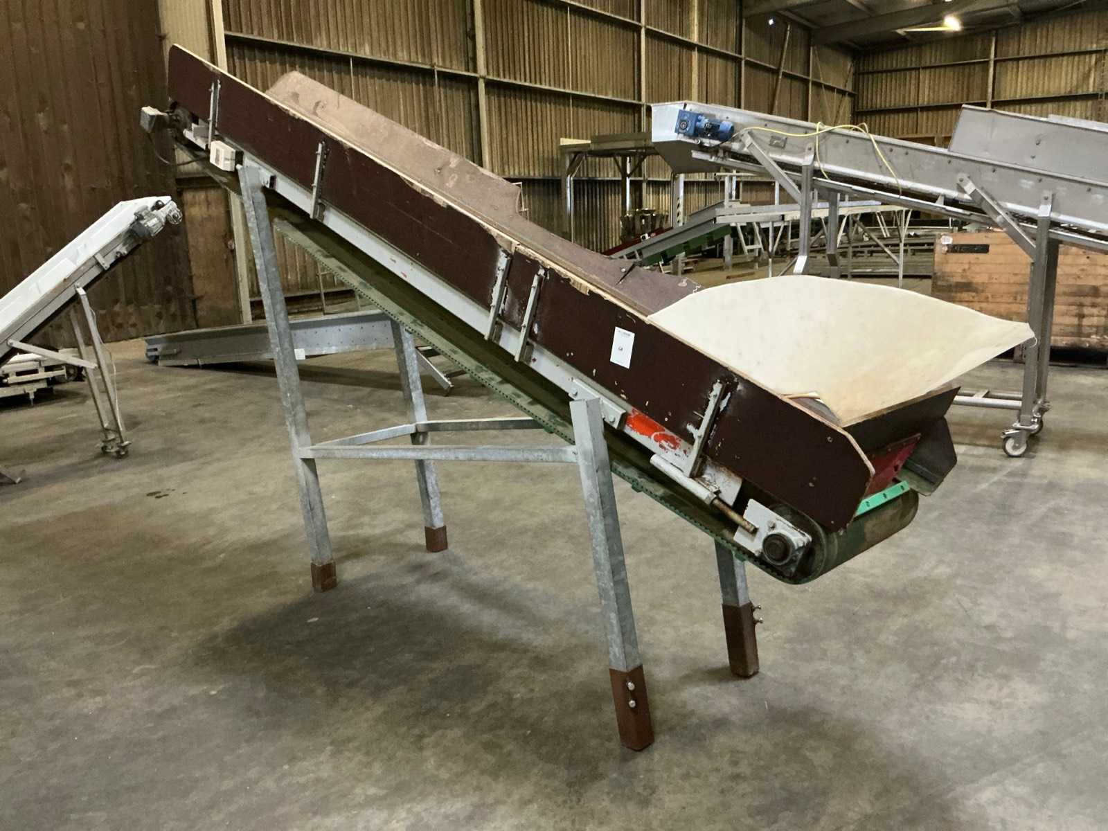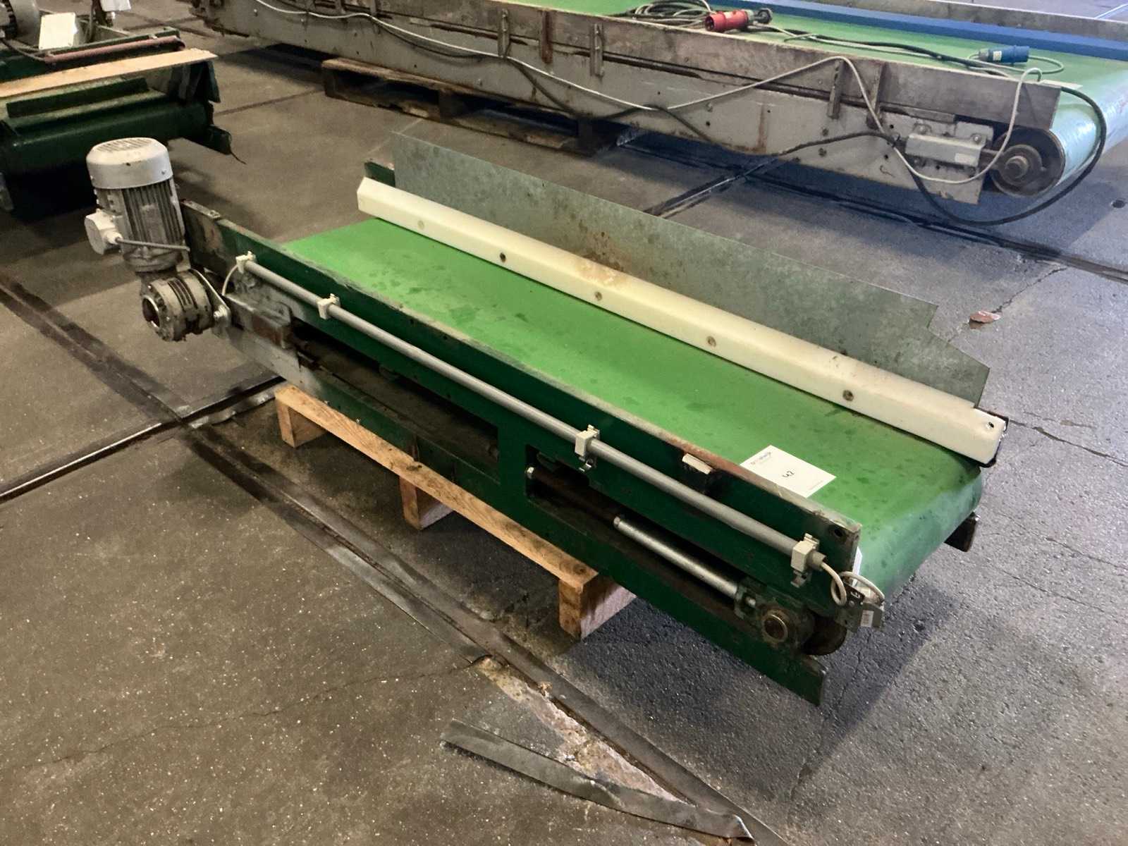 Technical data (according to nameplate and manufacturer's specifications): • Conveyor belt manufacturer: SOCO SYSTEM, Denmark • Conveyor type: belt conveyor with belt • Propulsion: Nerimotori T71B4 electric motor (newly replaced) • Motor power: 0.37 kW • Speed: approx. 1370 rpm at 50 Hz • Voltage: 230/400 V – 50 Hz, three-phase motor (IP 55, protection class F) • Conveyor belt width: 500 mm • Conveyor belt length: 7500 mm • Net weight: approx. 60kg Equipment & Features: • Solid metal frame with bolted side panels for high stability • Conveyor belt made of resistant material (plastic or rubber belt), durable and easy to clean • Newly installed Nerimotori motor for reliable continuous operation and long service life • Compact design for flexible integration into production and packaging lines • Note: Delivery does not include feet, these are not ...
