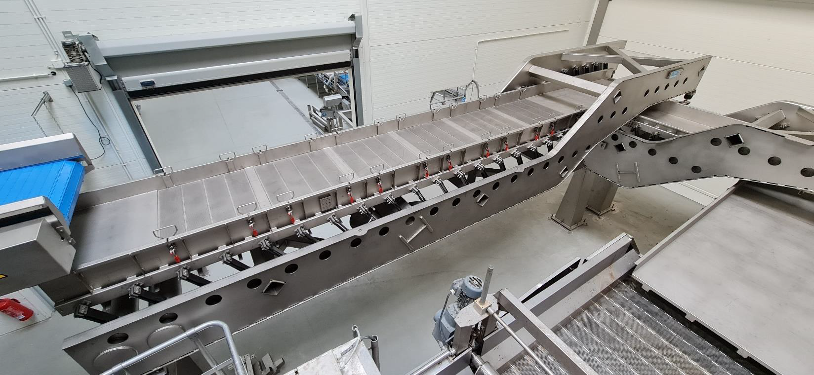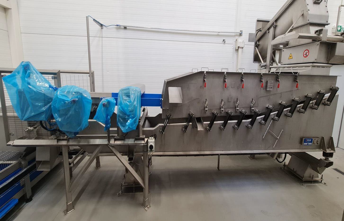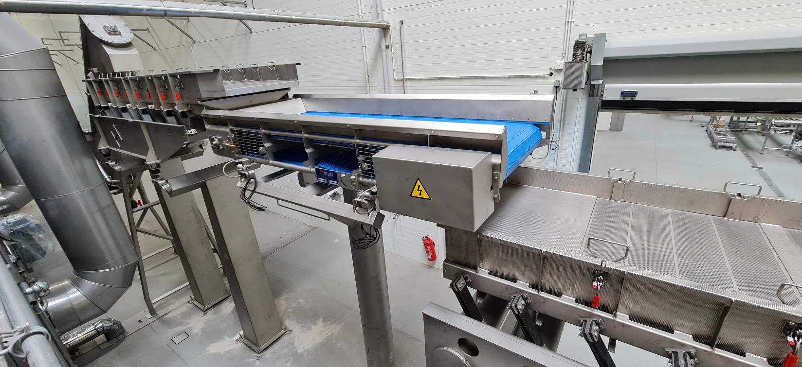 Food conveying and processing equipment LIST OF EQUIPMENT: 1.Incline auger conveyor (fabricated in Q4 2020) 2.Fruit declumper/breaker (fabricated in Q4 2020) 3.Metal detector shaker (metal detector head not included) (fabricated in Q4 2020) 4.Redler elevator (fabricated in Q4 2020) 5.Grading shaker with an additional set of screens (fabricated in Q4 2020) 6.Horizontal belt conveyor (fabricated in Q4 2020) 7.Redler elevator (fabricated in Q4 2020) 1. INCLINE AUGER CONVEYOR Dimensions: Length: 2.300 mm Width: 1.500 mm Features: Fully built in stainless steel. Accumulation hopper of 1 m3 capacity made of textured stainless steel. Cleaning window at the lower part of the hopper. Evacuation screw of 300 mm diameter built in stainless steel. Open upper side of the screw for cleaning. Draining valve for cleaning. Upper screens to avoid big frozen blocs. Safety protections. ...