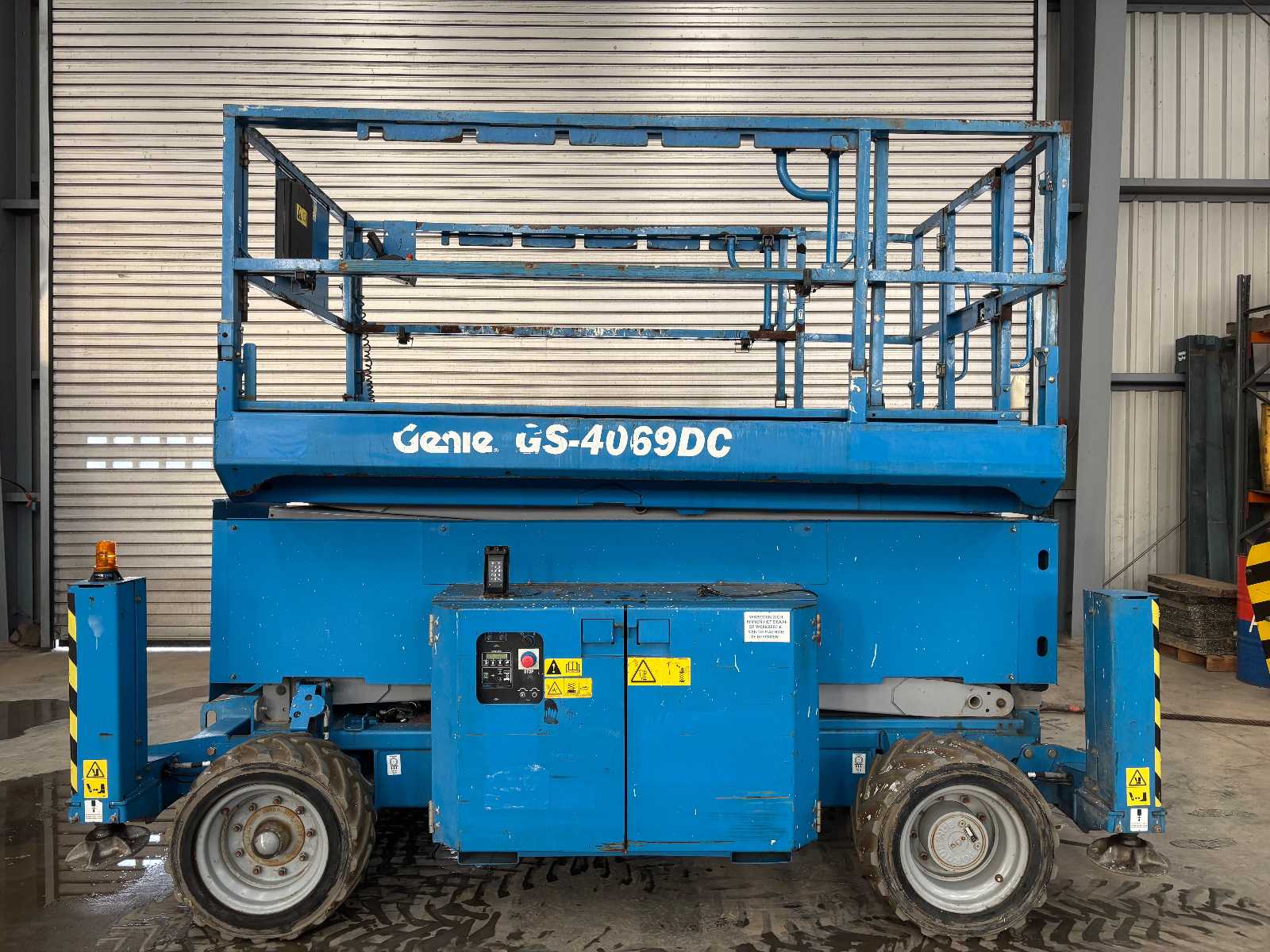 - Compact aerial platform for indoor use - Goes straight up + small swing arm (JIB) - Ideal for narrow spaces Typical Specifications (E300 AJP) - Working height: ± 10 – 11 meters - Platform height: ± 8 – 9 meters - Load capacity: ± 200 kg - Drive: electric (battery) - Very manoeuvrable (small turning radius) ️ Usage - Warehouses - Maintenance (lighting, pipes) - Installation - Interior Auction-ID: A3-43501-11402