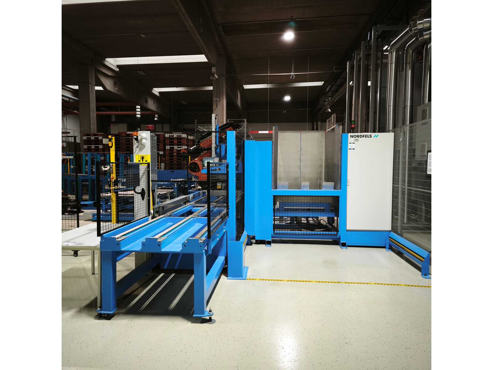 Conveyor system with 1 loader, linear conveyor unit, 1 stretching table, various storage boxes, and control unit ,, NOTOMSCO chane feed outfeed conveyor, Cab Squix 6.3/300 label printer, S/No 006366 - Please note this lot is also listed as part of lot 1 and is subject to seller conformation by Panasonic, total price for lots 25 to 41 must be greater that the price for lot 1. Auction-ID: A1-45187-26