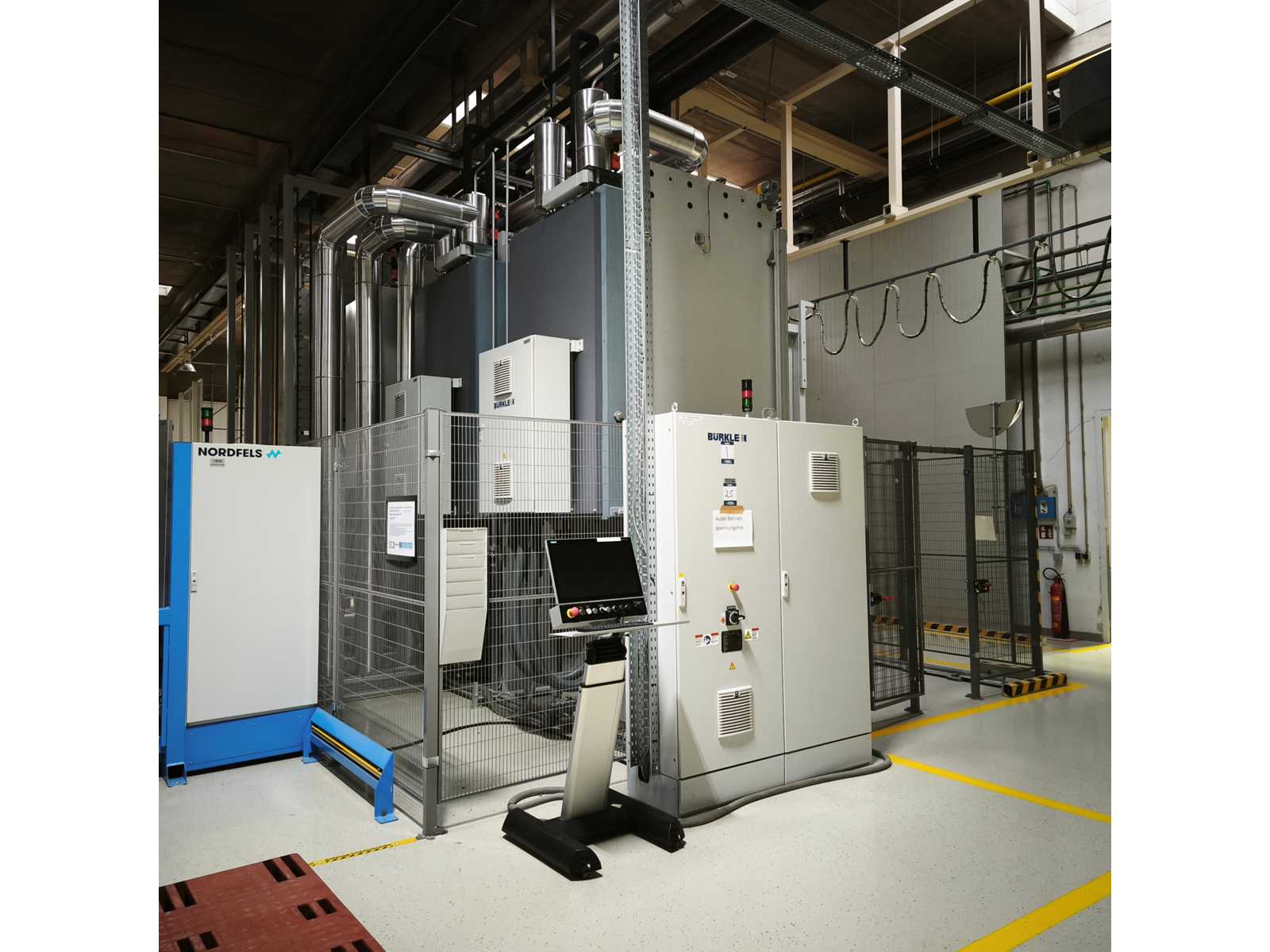 Bürkle Process Technologies 2 x model LAMVS, 1 x model LAMK presses, Machine Numbers 0145720010 and 0145720020 and 0145720180, automated PCB multilayer lamination presses designed for high throughput production with 2 x thermal-oil-heated vacuum laminating presses (LAMVS), 1 x hydraulic cold press (LAMK) for final cooling central Siemens SIMATIC PLC + HMI for line control - Please note this lot is also listed as part of lot 1 and is subject to seller conformation by Panasonic, total price for lots 25 to 41 must be greater that the price for lot 1. Auction-ID: A1-45187-25