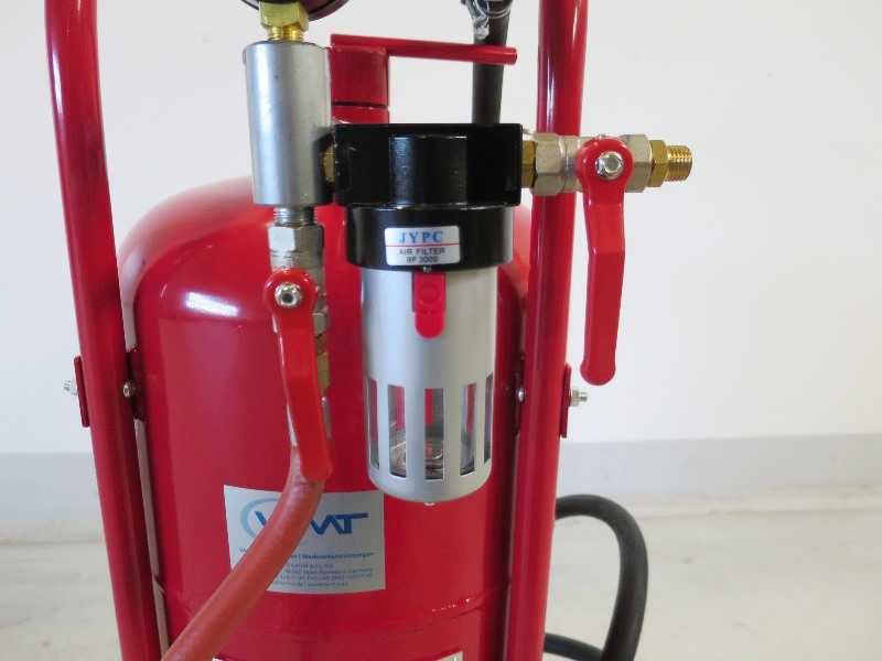 Technical data of the blasting vessel with extraction:Capacity 80 liters.Length of the hose 2.5 m. Working pressure 60 - 125 PSI.Air consumption Approx. 250 - 600 l/minPackaging dimensions 102 x 46 x 51.5 cm.Weight Approx. 36 kgVery useful for blasting places on large objects or outdoor objects.Delivery incl. microfilter with extraction. Condition: never used / new (5) Auction-ID: A7-44764-192