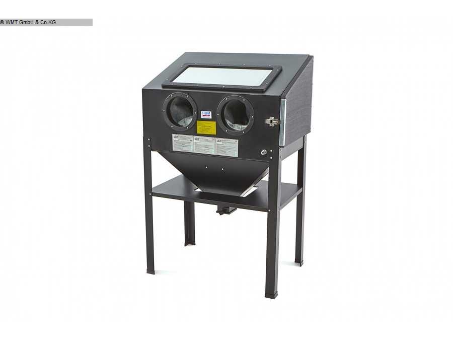 This sandblasting cab includes as standard:Front loader with two gas struts.Blasting gun4-piece nozzle setset gloveslightingkit protective filmsfoot pedal.Pressure regulatorsuction with microfilterOriginal packagingInternal dimensions 1170 x 580 x 580 mmOperating pressure 2.2 - 5.5 barDimensions L x W x H 1.22 x 0.93 x 1.7 mMachine weight approx. 0.15 tSystem is supplied in the color black Condition: never used / new (5) Auction-ID: A7-44764-37