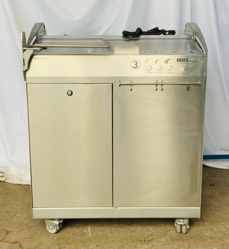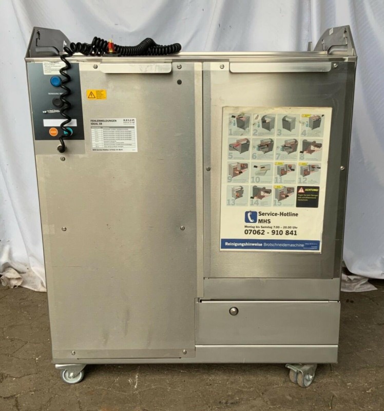 Ekmek dilimleyici / ekmek dilimleyici - kullanılan - çalışır durumda - Tip MHS İdeal SB - yapım yılı 2013 - yer değiştirmeyi kolaylaştırmak için 4 tekerleğe monte edilmiş - her türlü ekmek için - dış boyutlar genişlik: 89 cm, d.: 73 cm, yükseklik: 112 cm