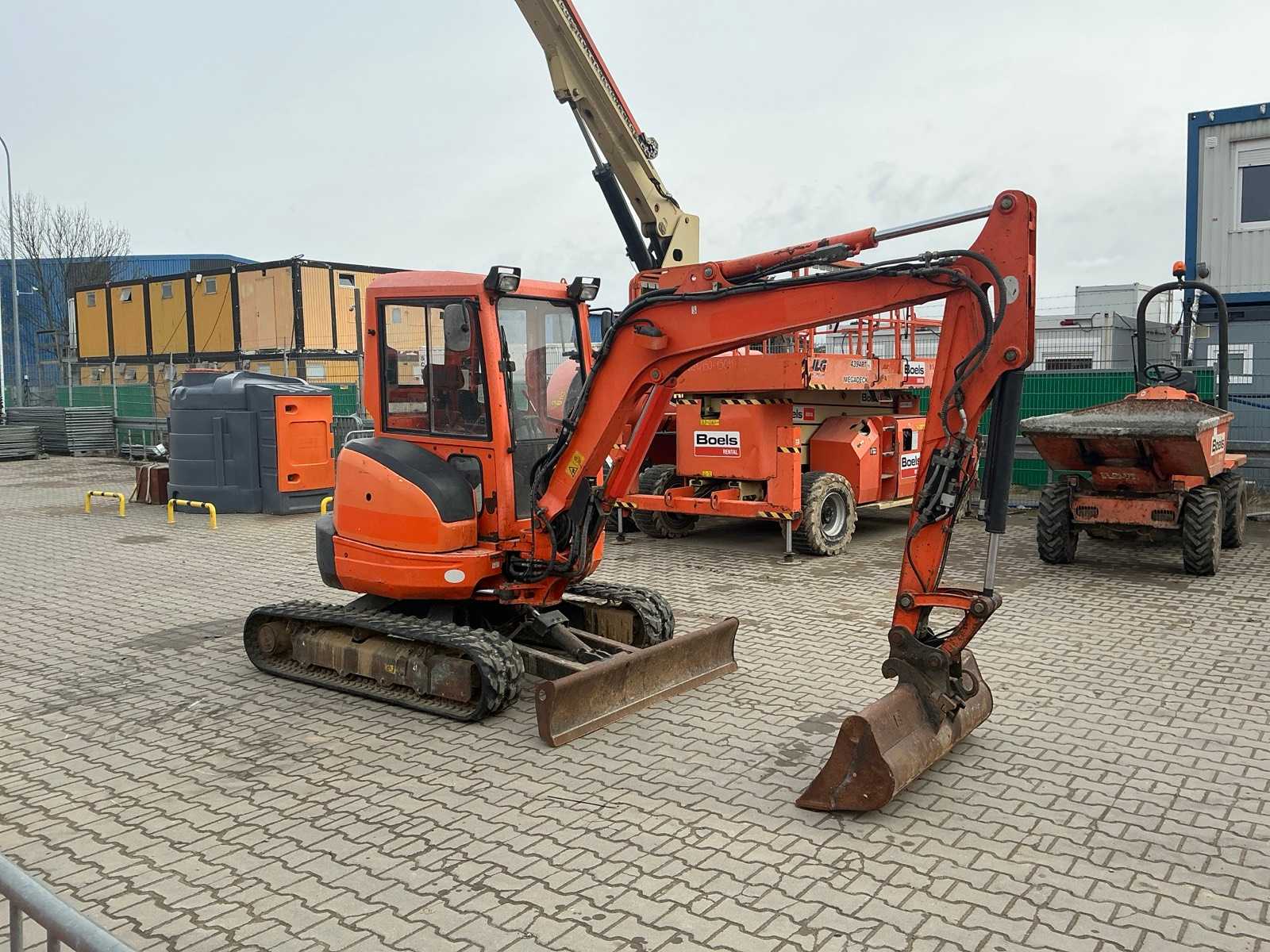 1800 kg mini excavator with 3 cylinder Kubota D722 eur5 diesel engine of 10.8 KW. Equipped with servo control. Equipped with cab, swing boom with radius of 1500mm, dozer blade 1100mm, hydraulic bucket change system, hydraulic pump 22L/min, breakout force 10KN, tank capacity 9.5 liters. Unused machine Auction-ID: A3-43502-5778