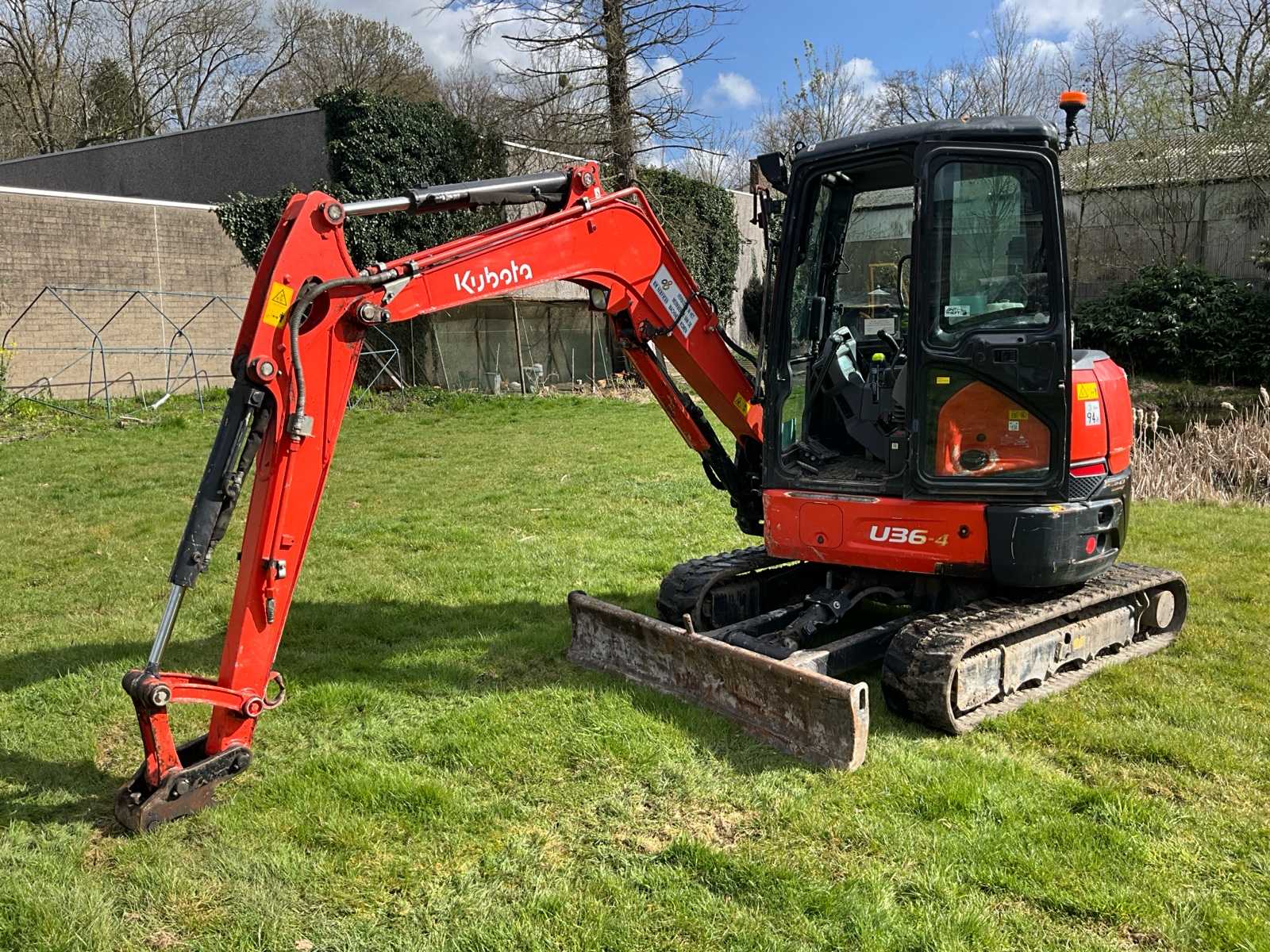 Featured; mechanical quick coupler, bucket 800mm, bucket 400mm, bucket 200mm, aux.connection along boom, ROPS bracket, CE marking, joystick control, max digging depth 1800(mm), Kubota 7.6 kW E-TVCS motor, 2-travel speeds, adjustable tracks 750-990 mm, internal rotation, max reach 3330mm, yield extra function 21 l/min @ 175 kgf/cm2, servo control, hoses concealed by the boom, LED work light, folding roll bar, fully opening hood, programmed key(ANTI-THEFT SYSTEM), Auction-ID: A1-40131-39