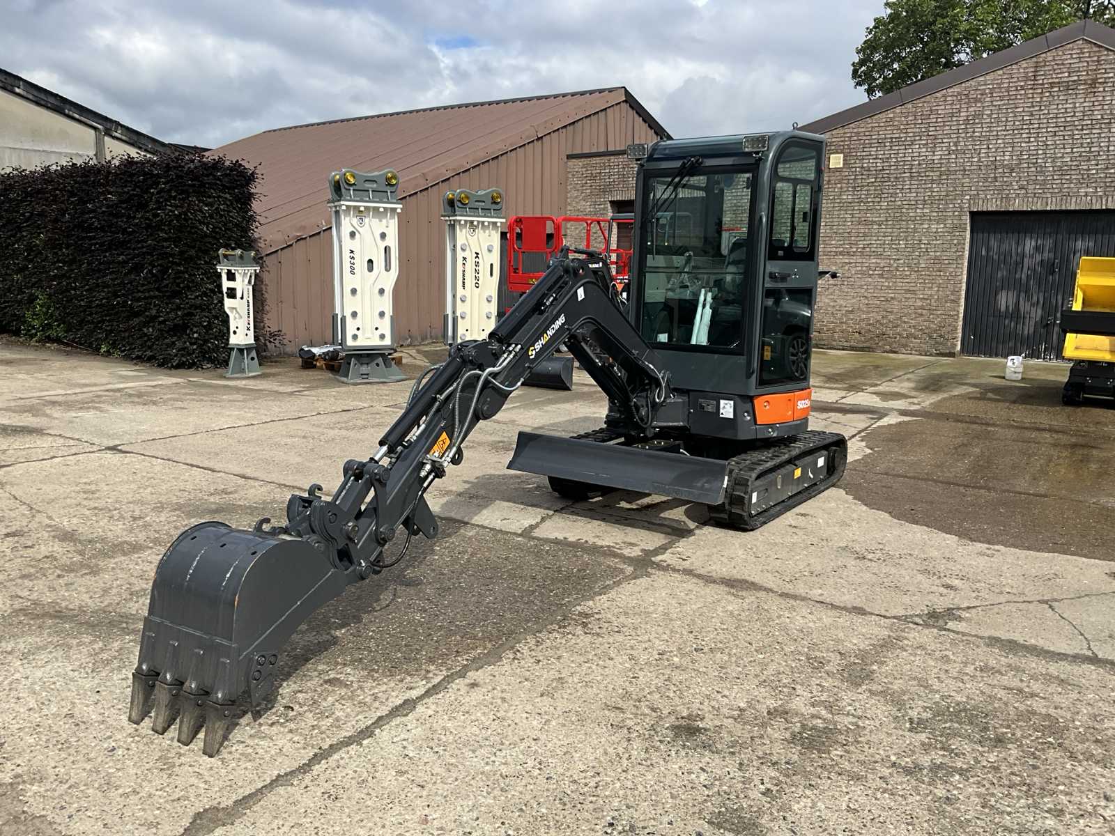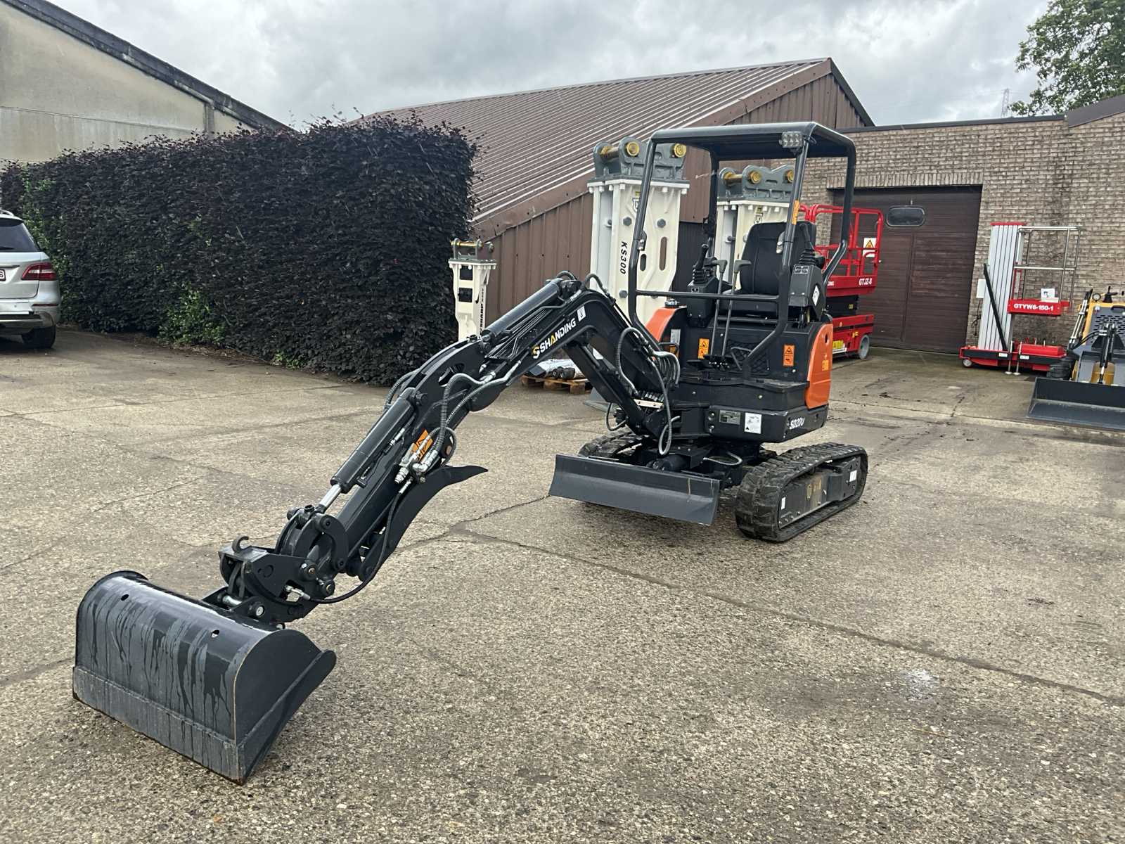 1800 kg mini excavator with 3 cylinder eur5 water-cooled diesel engine of 18.4KW / 25hp. Equipped with servo control. Equipped with cab, swing boom with radius of 1500mm, dozer blade 1100mm, semi automatic bucket change system, hydraulic pump 22L/min, breakout force 10KN, Excavator bucket 80cm, tank capacity 9.5 liters. Unused machine Auction-ID: A3-43502-5777