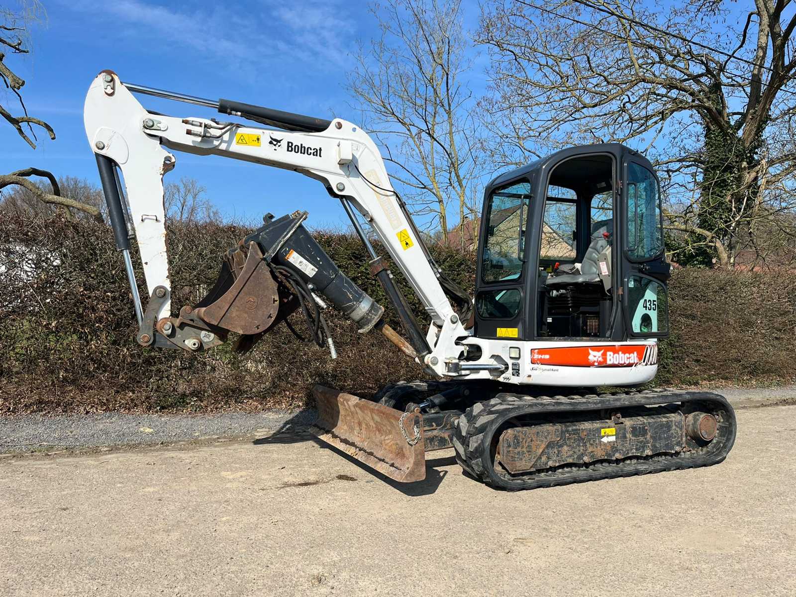 Neat bobcat 435 with very few hours (410h original). Normal signs of wear. Incl excavator bucket 2x+breaker hammer Auction-ID: A3-43502-17011
