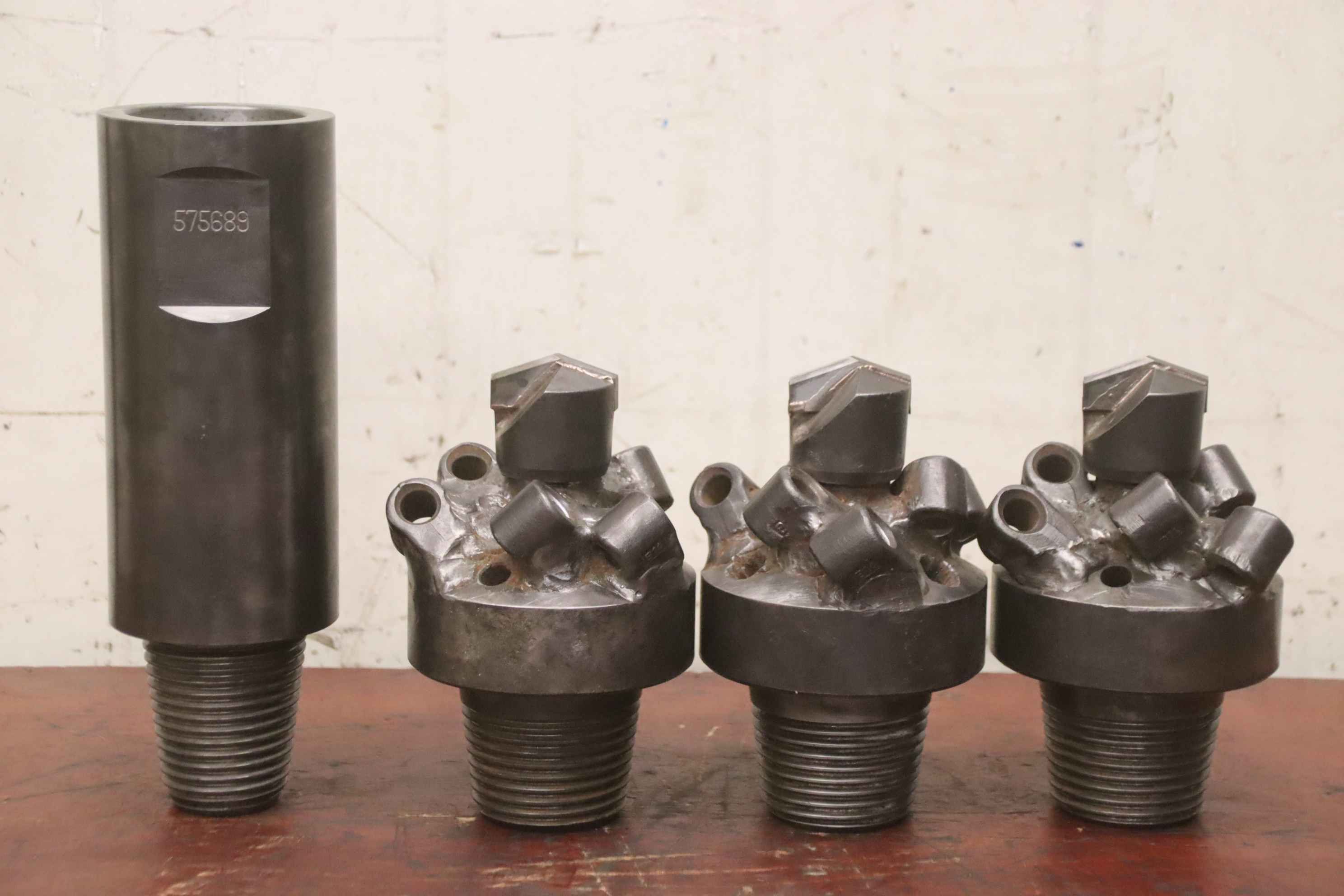 Core bit, step chisel, core bit for well construction, core drill, core drilling machine, diamond core bit, core bit for well drilling machine -Drill bit: 3 pieces drill holder plus 1 piece extension adapter -Dimensions: see photos -Delivery/Price: complete -Transport dimensions: 250/250/H280 mm -Weight: 27.3 kg
