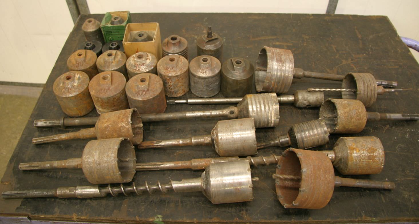 Core drill, core drill, diamond core bit, drill bit -Core drill: Ø 1x50/1x63/1x68/12x90/5x100/1x81/3x80/2x65/1x120/1x130 mm -Quick-change chuck: SDS Max -Weight: 42 kg