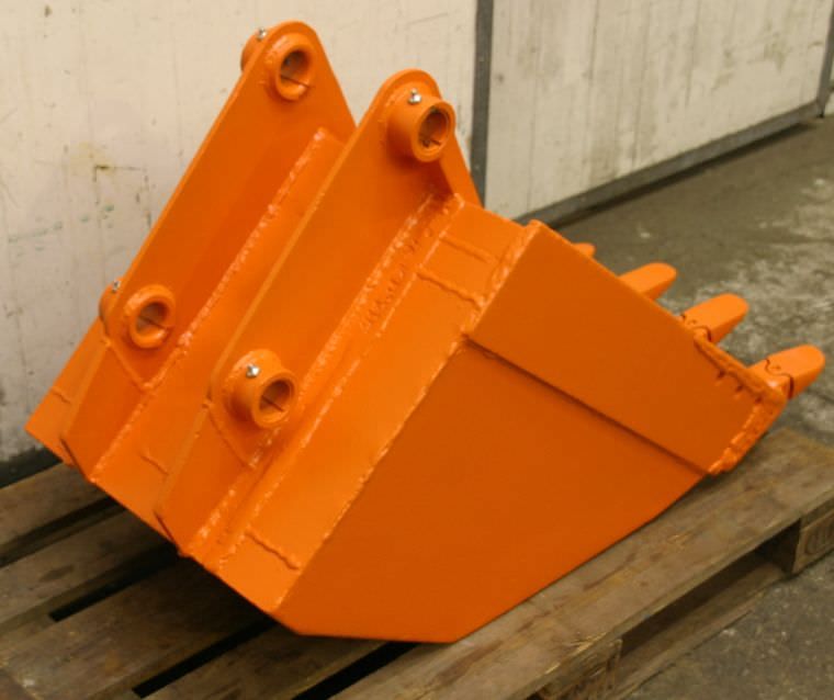 Digging bucket, excavator bucket, demolition bucket, trenching bucket, excavator bucket, ditch cleaning bucket -Manufacturer: KFL, excavator bucket, digging bucket type T185 -Width: 880 mm -Height: 775 mm -Depth: 960 mm -Internal width of opening: 280 mm -Mount: Bore Ø 60 mm, dimensions see photos -The attachment to the spoon: can be changed by us for an additional charge. -Transport dimensions: 960/880/H830 mm -Weight: 228 kg