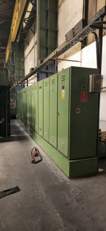 Çift vidalı ekstruder, konik Üretici firma: Reifenhäuser Türü: BT 1000-2-63 K Yapım Yılı: 1994 Makine No.: 32061 Saatler: 32,303 h Vida geometrisi: PVC sert profiller için konik Vida çapı: 63 – 121 mm Vida uzunluğu: 1300 mm Vida hızı: maks. yaklaşık 32 1/dak. Şanzımanın nominal torku: 1000 daNm Dönüş basıncı yatağının dinamik yük derecesi: 103600 daN Motor gücü: 43.0 kW, Tahrik motoru: Baumüller DC motor Silindir ısıtma/soğutma bölgeleri: 4/3 (fanlı hava soğutma) Adaptör ısıtma bölgeleri: 1 Takım Isıtma Bölgeleri: 5 Sıcaklık kontrolü: dijital sıcaklık kontrolörü (2 x PSG Multipact 88) izin verilen kütle basıncı: 500 bar Çıkış kapasitesi: PVC sert profiller için yaklaşık 150 - 200 kg/saat Aksesuarlar: Dozaj cihazı ve malzeme haznesi Ekstrüzyon yüksekliği: 1150 mm Boyutlar: 4250 x 1200 x 1750 mm, haz ...
