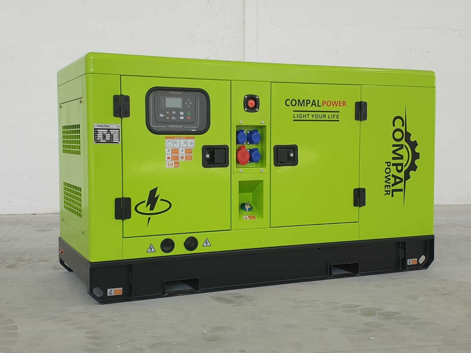 COMPAL POWER VG-R30 electric generator, super silenced, automatic electronic ignition, Ricardo 4-cylinder water-cooled engine, engine with fuel consumption reduction system. Outputs 220/380 Volt, power 30 kW-41, 3kVA Never used 0 hours. The power indicated refers to the peak power. Overall dimensions: 2000 x 1000 x 1200 mm Weight: 900 kg Auction-ID: A7-44803-92