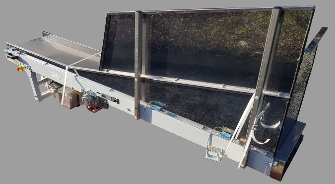 inclined conveyor. Due to the 2-layer PVC belt, the transported goods