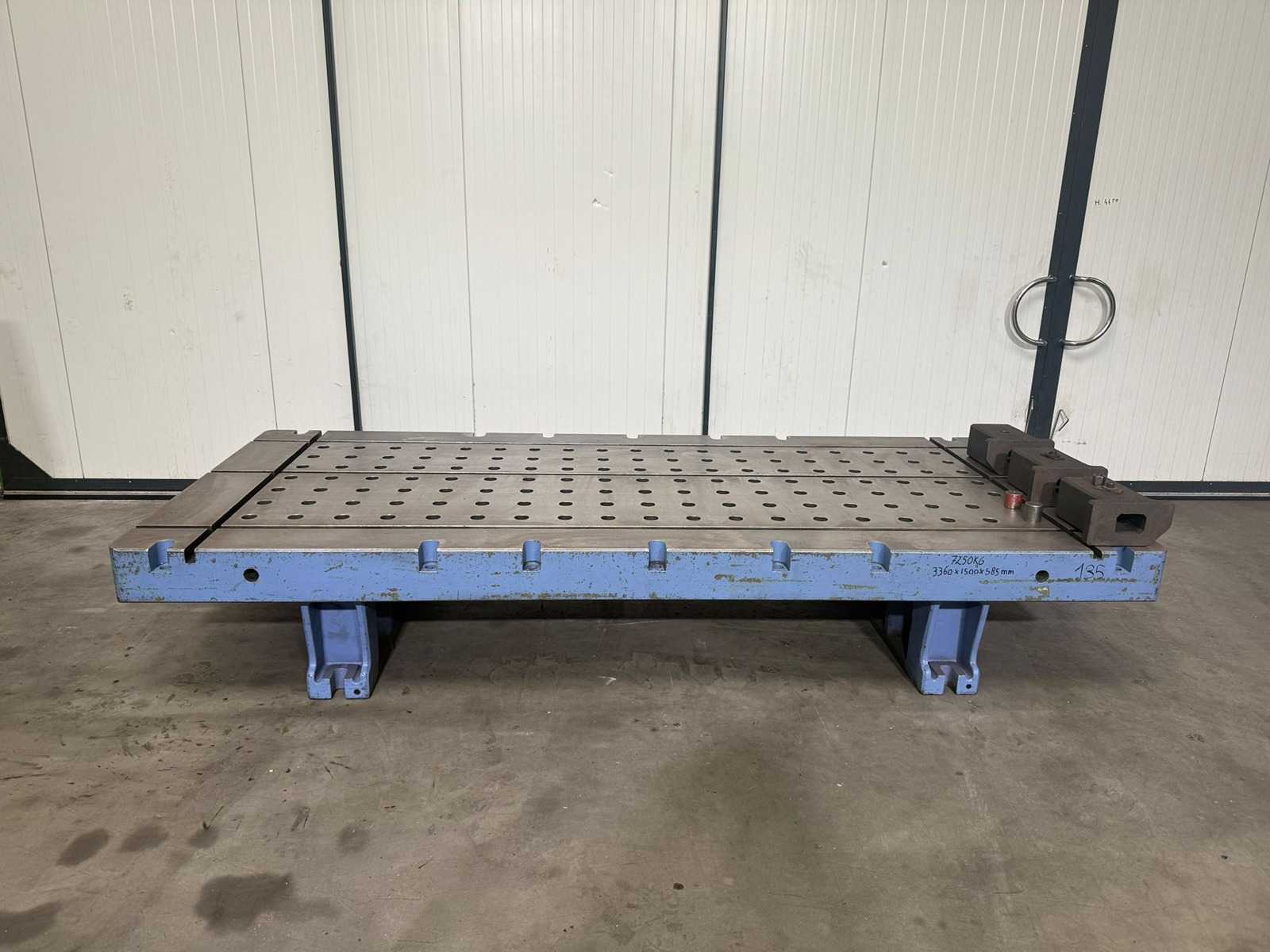 : neu : ca. 6-8 Wochen ab Auftrag : 10265 €: 197.09 €: 4000 x 2000 mm: 850 mm: 8000 kg: 2340 kg: 200 mm: 28 mm- Fully milled table top 25 mm in S355J2+N with high degree of accuracy (+/- 0.05 mm) and rounded edges and holes- Hard chrome-plated table surface Cr75The main advantage of our tables compared to conventional systems is with the hard chrome plating Cr75, that this process achieves a much deeper penetration into the base material of up to 0.07 mm and the hardness of the surface reaches up to HV750. This also ensures optimum and lasting anti-spatter adhesion on the surface, which is one of the most efficient on the market.- Exact dimensional and fitting accuracy of the tools with 28 mm perforation (compatible with comparable premium suppliers)- Grid lines 100 x 100 mm- 4 solid table feet withload capacity 2 ton/feet and levelling option- Different foot variants available (stan ...