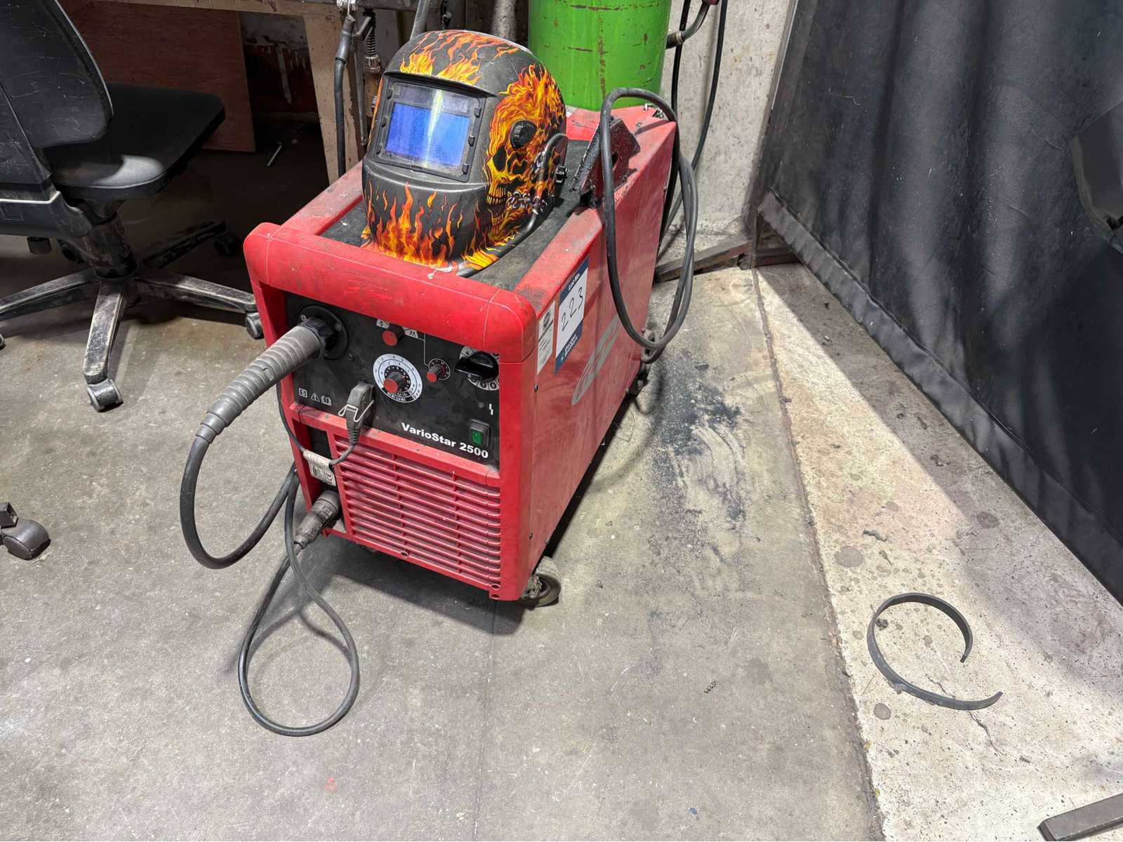 250 amp MIG welding rectifier with leads and gun, S/No 17340921, with 2 welding helmets, ANR 2452 Auction-ID: A1-45187-223