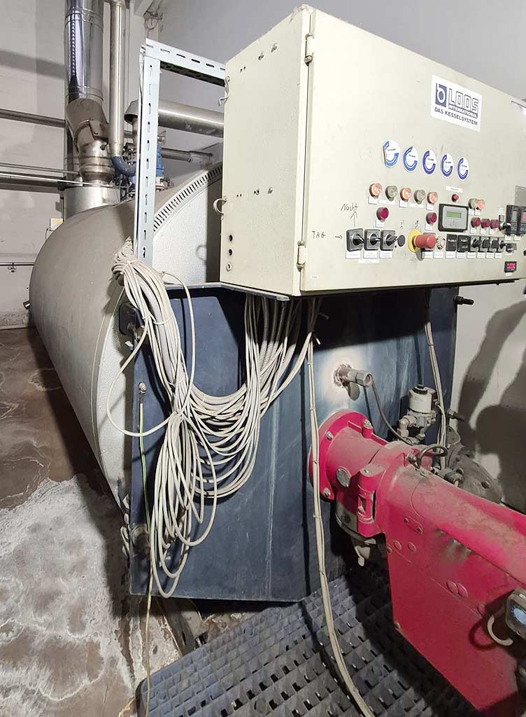 Makine özellikleri: One Loos buharlı kazan, 13 bar, 10 ton tip AW1-1, No. 53658/1 Güç: 20 bar'da 10 ton buhar, 235 °C'ye kadar, 385 kW Üretim yılı: 1991 EL ısıtma yağ ve gaz ateşleme için beyaz baş yakıcılı, Tip: RGL 70/1 A, Kategori J, Fabrika numarası: 3626804 Yapım yılı: 1991