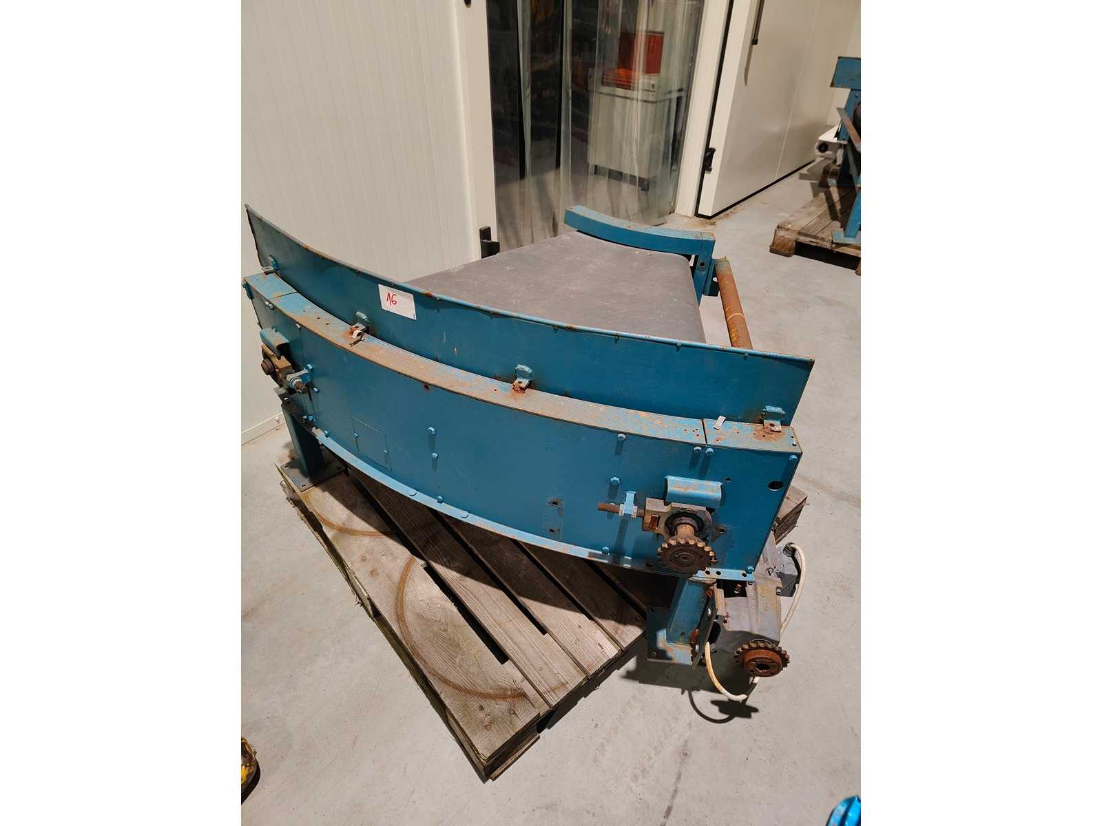 Konveyör bant / bant kanadı / biriktirme konveyörü Çalışma yüksekliği yaklaşık 850 mm, ayarlanabilir. Uzunluk yaklaşık 800 mm Genişlik yaklaşık 450 mm Aşağı akış makinesi işgal ettiğinde ürünü durdurmak için fotosel ile donatılmıştır. Fonksiyon geçiş kanadı ile donatılmış > kayışlar, kanat kaldırılır kaldırılmaz durur. Kendi sürücüsü ve kontrolleri ile donatılmıştır. Sabit taşıma hızı, frekans dönüştürücü takılı değil. Makine kusursuz çalışıyor. Yeni konveyör bantları kuruldu.