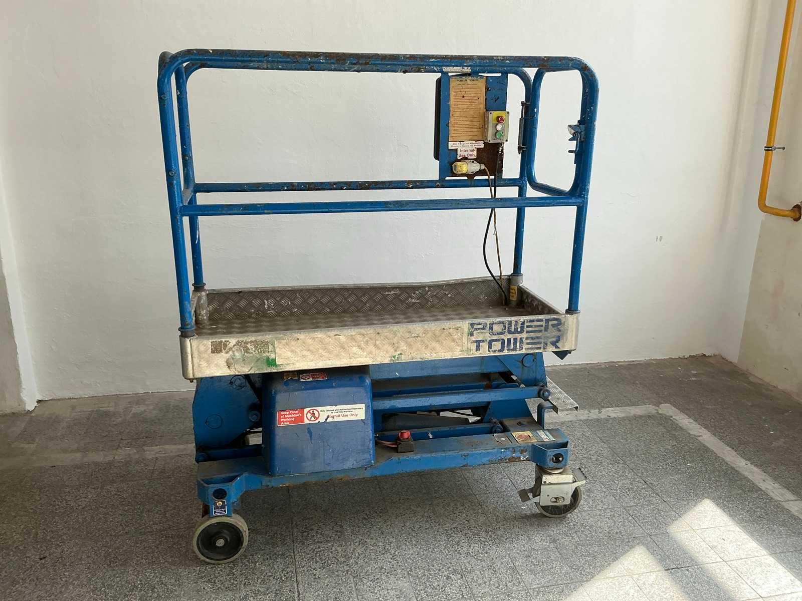 Equipped with: working height 7.90 m, platform capacity 363 kg, weight (+/-) 2,026 kg, length 2.44 m, width 0.81 m, height 2.12 m, height (railing folded) 1.78 m, platform width 0.81 m, platform length 2.26 m, platform length (extended) 3.18 m, battery power 24/225 V/Ah, non-marking tires, Auction-ID: A1-40133-270