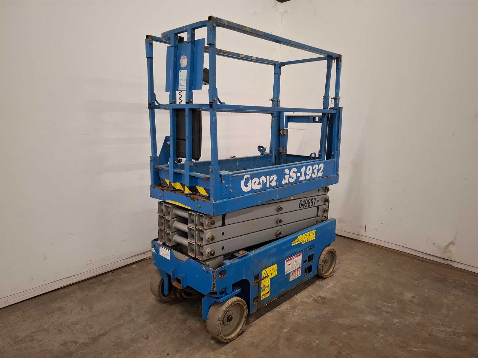 Features: DC motor controller, full-height rideability, variable speed, dual-rear wheel hydraulic drive, proportional control for travel and lift functions, 0.91 m extendable platform, low battery protection, solid rubber tires, Non-marking, attachment points for safety cords, forklift openings and attachment/lifting eyes, working height: 8.10 m, platform height (max): 6.10 m, platform height (retracted): 0.97 m, total width: 0.84 m, total Length: 2.32 m, Height (handrails up): 1.97 m, Platform width (interior): 0.71 m, Platform length (interior): 2.13 m, Extendable platform (deck): 0.91 m Auction-ID: A1-40133-277
