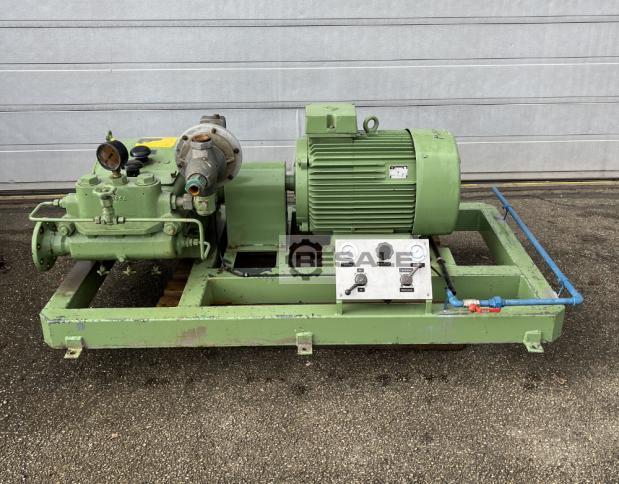 Pistonlu Pompa, Yüksek Basınç Pompası, Homojenizatör, Plumger Pistonlu Pompa, Pistonlu Pistonlu Pompa Üretici firma: WOMA Apparatebau GmbH Türü: 753.50 maksimum basınç 150 bar Akış hızı yaklaşık 175 l/dak Motor Güç: 55 kW 1500 dev/dak 380/660 volt 50 Hz Boyutlar yaklaşık 1800 x 1000 x 750 mm