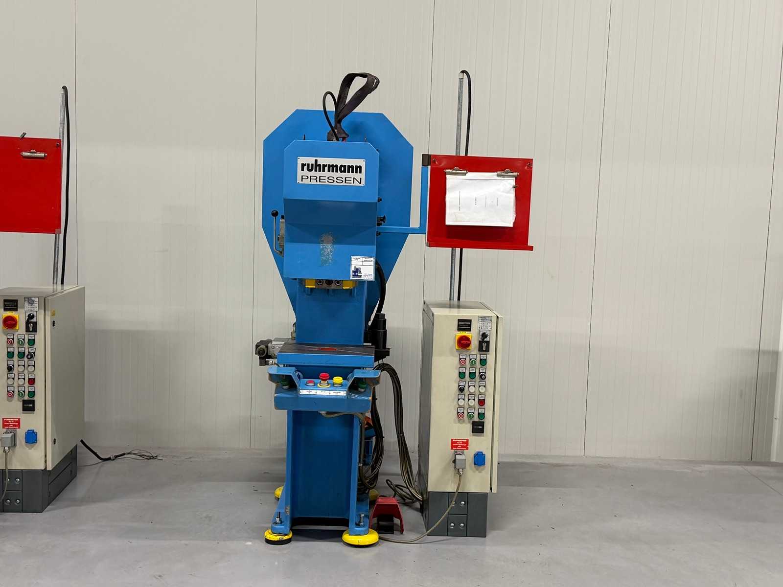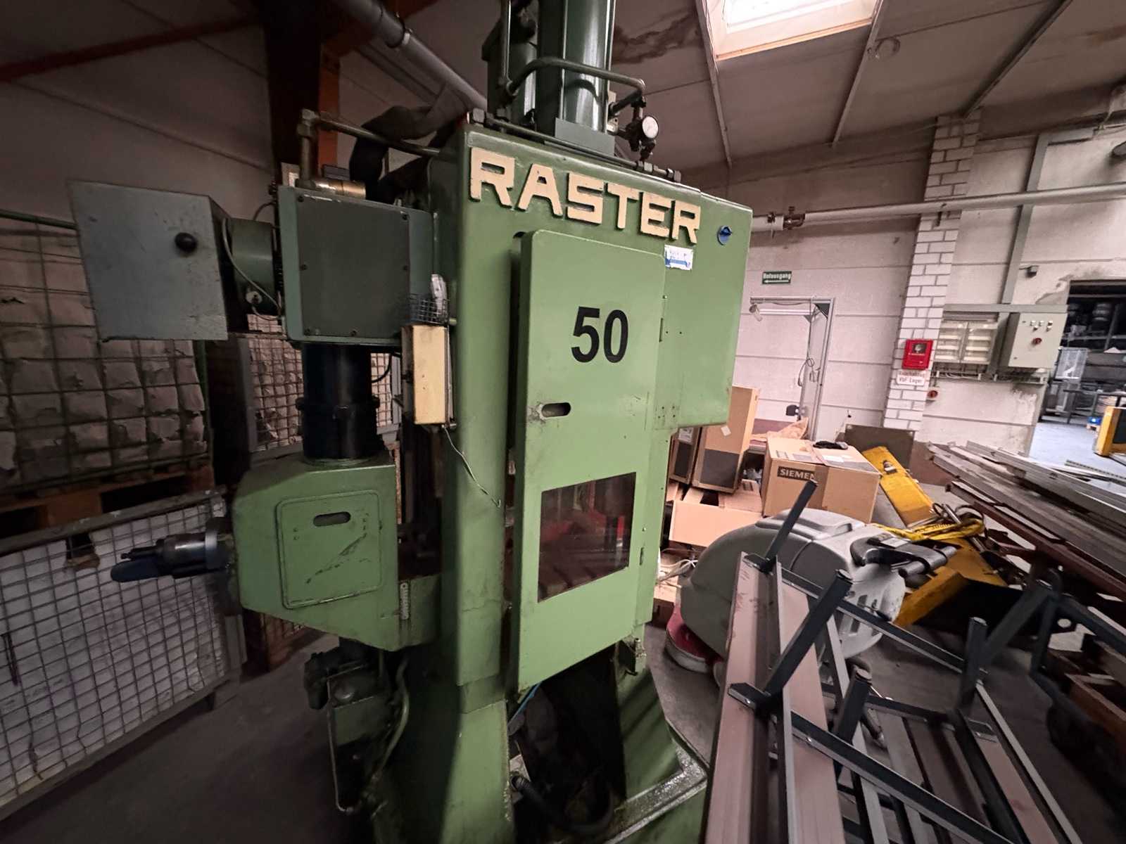 Raster 50 Hydraulic Press Machine Type: Hydraulic Press / Deep Drawing & Forming Press Manufacturer: Raster GmbH, Germany Model: Raster 50 Pressing force: 50 tons Drive type: Hydraulic with continuously variable PIV transmission (W. Reimers KG, Homburg) Construction: Compact, closed steel frame with high rigidity Drive motor: approx. 4–7.5 kW Operating voltage: 400 V / 50 Hz Control: Electric control panel with two-hand safety control Time and pressure regulators for precise control of the pressing process Pressure display and hour meter integrated Hydraulic: Hydraulic power unit with oil cooler and filter system Oil level indicator with sight glass Pressure relief valve for system protection Recommended hydraulic oils: Renolin MR15, Energol GR XP, Mobilgear 626 Specifications: Operating pressure: up to 250 bar Stroke: approx. 200–300 mm Installation height: approx. 500–600 mm ...