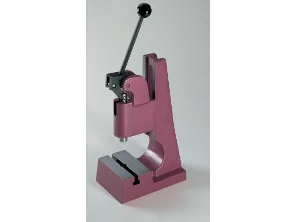 Toggle press>br>• Working height adjustable by simply loosening the clamping screws on the stand>br>• Fine working height adjustment with HK 800 = millimetre-precise adjustment of the >br> press head to the desired working height. Fine adjustment is >br> compulsory in both directions via a threaded spindle>br>• Hand lever arranged in a user-friendly manner, return via spring>br>pressure 500 kN>br>stroke 40 mm>br>projection 73 mm>br>working height of up to 60 - 150 mm>br>table surface 115 x 70 mm>br>Machine weight approx. 10 kg >br>condition: never used / new (5) Auction-ID: A7-44817-136