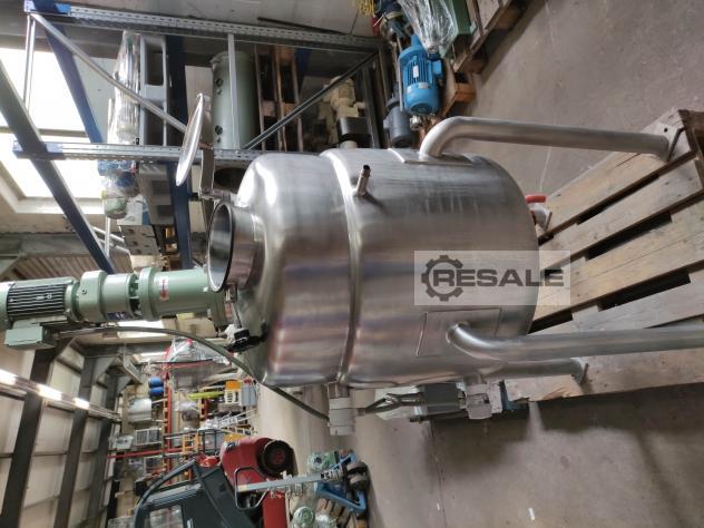 Kullanılmayan Briggs of Burton işlem kabı, yaklaşık 1.200 litre, 316/316L paslanmaz çelikten. Ünitenin çapı yaklaşık 1.200 mm x düz tarafı 870 mm boyutlarındadır. Ünite, cıvata ile bağlanan kubbeli bir kapak ve kaynaklı yarımküre şeklinde alt kısım ile donatılmıştır. Dahili tasarım basıncı, -20 ila 210 C aralığında 10 bar/tam vakum için derecelendirilmiştir. 304/304L paslanmaz çelik dış kaplama, 10 bar tasarım basıncı/tam vakum için -20 ile 210 C arasında derecelendirilmiştir. Ünite, 11 kW motor/şanzıman motorlu PTFE duvar kazıyıcılarıyla donatılmış 316/316L paslanmaz çelik üstten giriş kapı tipi bir karıştırıcıya sahiptir. Ünite, 22 kW motor ile çalışan 316/316L paslanmaz çelik Silverson Model BE600 Alt Giriş Emülgatörünü içerir. Ünite, 304/304L paslanmaz çelik ayaklar üzerine monte edilmiştir. Hacim Topl ...