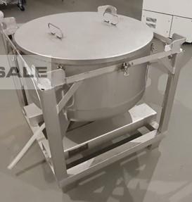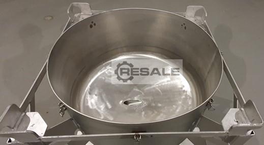 yaklaşık 500 litre paslanmaz çelik konteyner Türü: Akış tankı İçerik: yaklaşık 500 litre Teknik özellikler : Yüzücü V2A Boyutlar yaklaşık: Dış çap 1.180 mm, silindir. Yükseklik 500 mm, toplam yükseklik 1.000 mm Çıkış DN 65