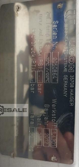 1000L Paslanmaz Çelik Tank | Şekillendirme Teknolojisi Hausach | BM Onayı | V4A 1.4571 | kullanılmış Satılık, Umformtechnik Hausach GmbH şirketinden kullanılmış 1000 litrelik paslanmaz çelik bir tanktır. Tank, yüksek kaliteli paslanmaz çelik 1.4571'den (V4A, AISI 316Ti) yapılmıştır ve tehlikeli maddelerin depolanması ve taşınması için UN onayına (UN 31A/Y/11) sahiptir. Gıda endüstrisi, kimya, tarım veya endüstriyel depolama uygulamaları için idealdir. Tank bakımlı durumda, sıkı, temiz ve hemen kullanıma hazır. Forklift cepleri ve güvenli bir kubbe kapağı ile sağlam bir boru şeklinde çerçeve konstrüksiyonuna sahiptir. ⸻ Özellikler: • Kapasite: 1000 litre • Malzeme: Paslanmaz çelik 1.4571 (V4A, asit ve kimyasallara dayanıklı) •Ab. Toplam ağırlık: 2100 kg • Boş ağırlık: 228 kg • Minimum duvar kalınl ...