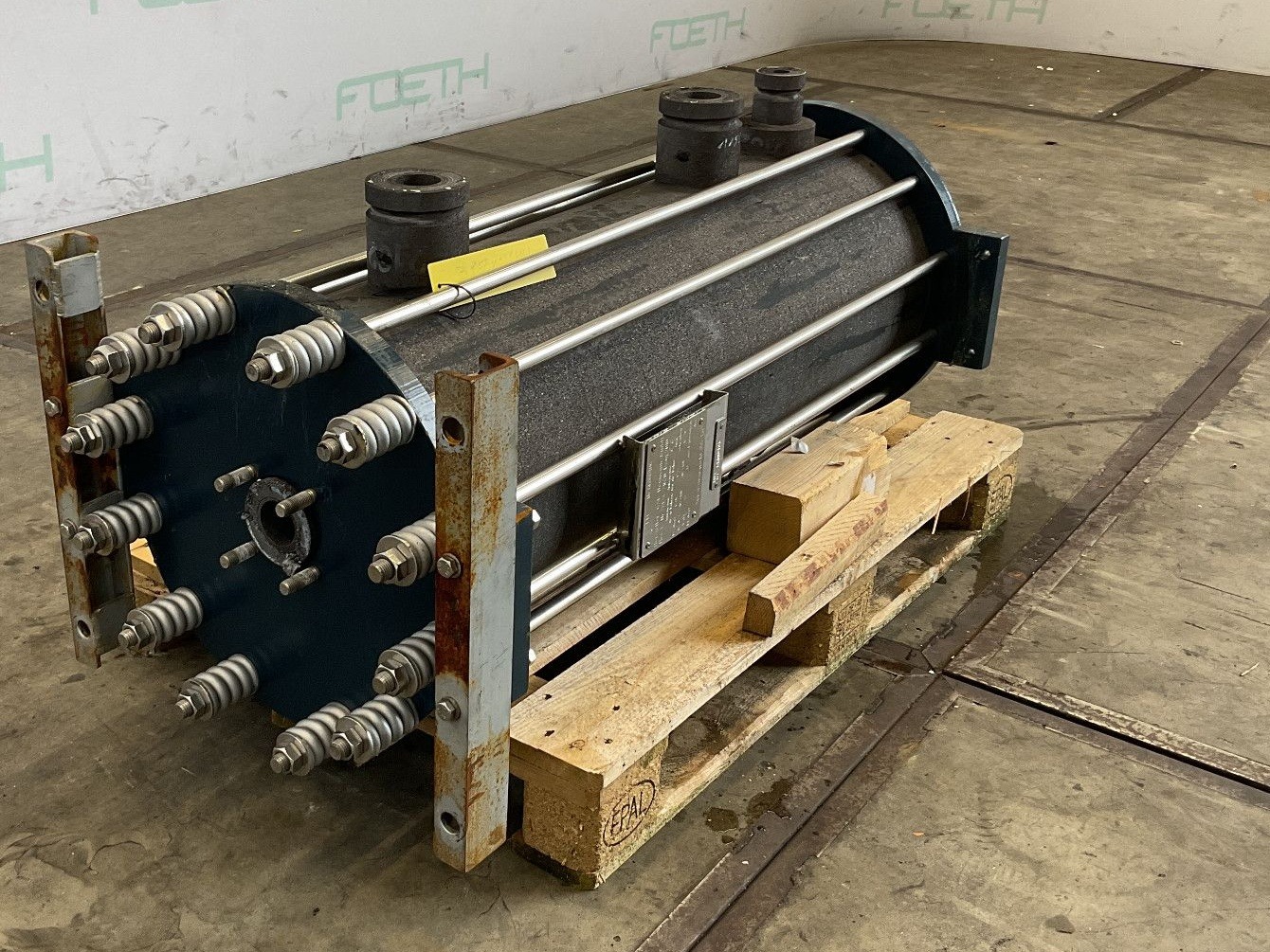 General SKU309N517 MakeFalk Gmbh & Co KG Bendorf No.3301 Year of construction2007 LocationBarneveld Pressure Working pressure shell2.5 Bar Working pressure tubes6 Bar Main Features Shell (Material)Mild steel Tube (Material)Mild steel Surface81.3 m2 Specified Features - Shell and tube heat exchanger MaterialMild steel Heat exchangercheck Heating surface81,3 m2 Tube capacity525 Ltr Number of tubes:126 Tube diameter25mm Tube length3900mm Max. temperature100 gr.C. Shell capacity1140 Ltr Shell connections(2x( dia.150mm Cover connections(2x) dia.100mm Information Floorspace5,5x0,9 M Weight2170 KG Extra SpecificationsThe material of the shell and tubes are 1.0345 (P235GH) Catalysts & fillersFeed additivesPaper & otherSolventsDetergent & surf.Other pharmaceuticsCosmeticsOrganicsE-waste & metalFood additivesSugarLubricants & oleoDairyAnimal feedOther feedConfectionery ...