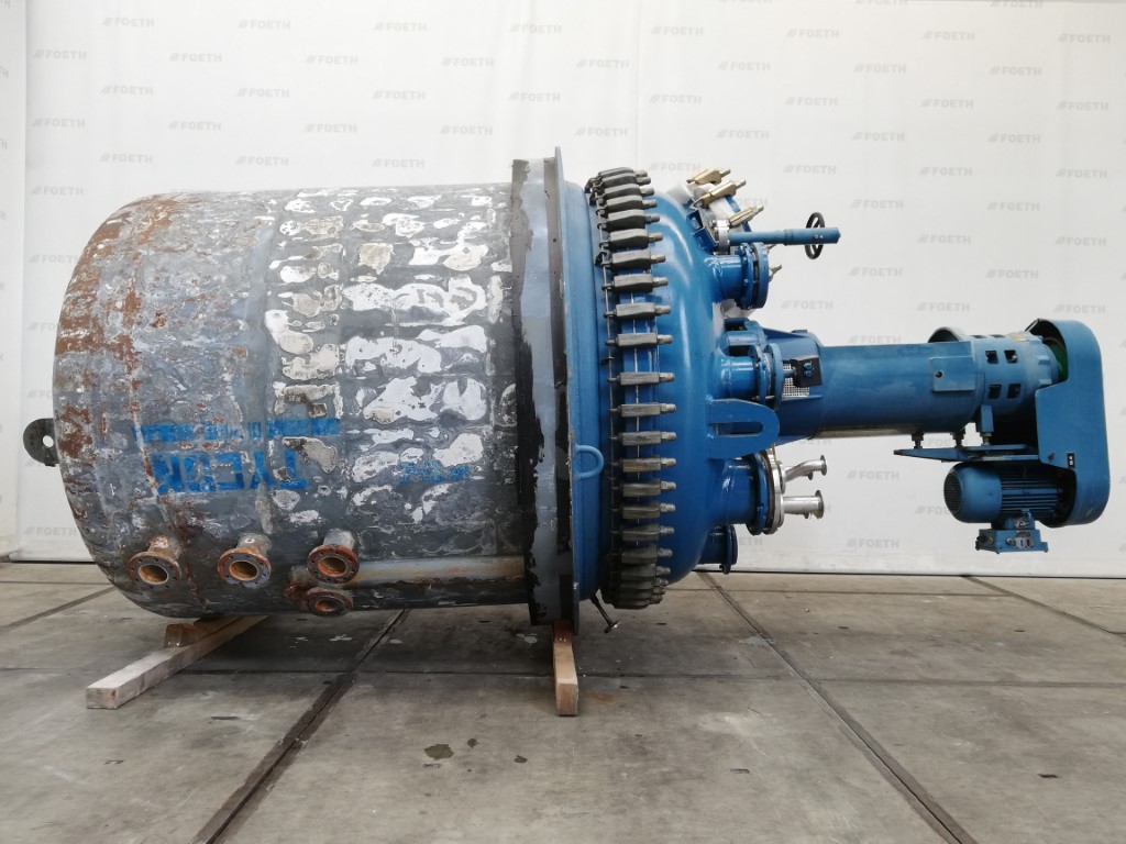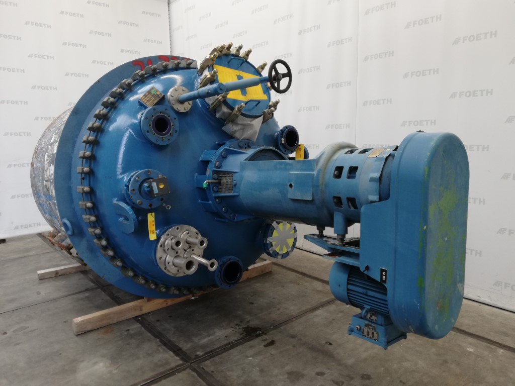 General SKUR0905 MakeTechnoglass spa (top part) / Tycon (vessel part ) (IT) TypeAE 6300 LocationBarneveld Pressure Working pressure6 Bar Vacuum possiblecheck Working pressure jacket7 Bar Main Features MaterialGlass Volume6300 Ltr. Motor15 KW Specified Features - Glass-lined Reactor Reactorcheck Capacity6300 ltr (Nett.) Vessel sizesdia. 2000x3060mm Dished bottomcheck Dished top sidecheck Manholedia. 500mm (man hole cover missing) Top connectionsDN250 (2x), DN150 (5x) OutletDN150 With jacket(685 ltr.) Max. temperature-25/250 Degr.C With anchor stirrercheck Motor15 kW 380 Volt (Ex) Glass Reactors MaterialGlass Information No.4512 Year of construction1990 Floorspace2,4x2,4 M Total height5,1 M Weight9000 Kg ATEX compatiblecheckCatalysts & fillersSolventsDetergent & surf.Other pharmaceuticsCosmeticsLubricants & oleoSolid pharmaceuticsDyes & pigmentsAPIGlass-l ...
