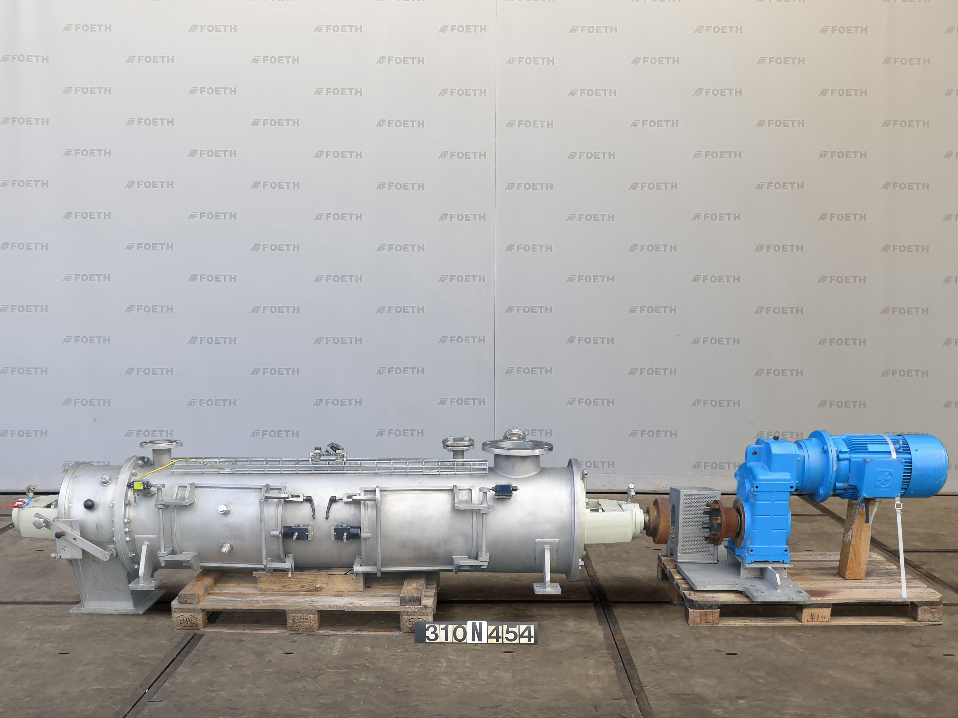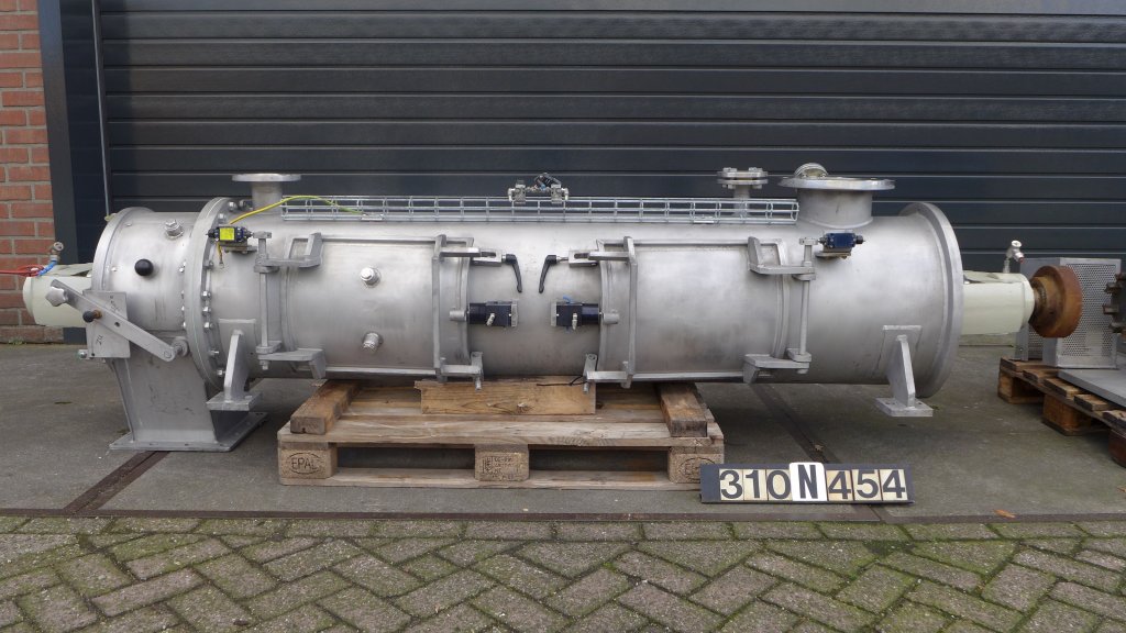 General SKU245P309 MakeBuss AG Basel TypeM-1000 Easy Clean No.7050 Year of construction1988 Mounted on frameEasy Clean Pressure Working pressure0.5 Bar Vacuum possiblecheck Working pressure jacket8 Bar Main Features MaterialStainless steel Volume700 Ltr. Motor10 KW Specified Features - Paddle dryer Paddle dryercheck Capacitynett.700 Ltr (1375 ltr) Outletdia.400mm External heating spiral(30 Ltr) Shaft can be heated(33 ltr) Max. temperature160 degr C With mechanical sealcheck Motor10 kW, 220/380 Volt (EEx-e-II-T3) With variable speed drivecheck Speed mixing shaft5-30 rpm With vacuum pumpApovav PMH 136 D2 X3 Motor2,5 KW, 380 Volt MaterialStainless steel 1.4435 (316L) Information LocationBarneveld With switchgearcheck Floorspace5,5x2,0 M Total height+/- 4,0 M Weight6000 KG Extra SpecificationsComplete system including :(2x) Vapor condensor U-type, surface ...
