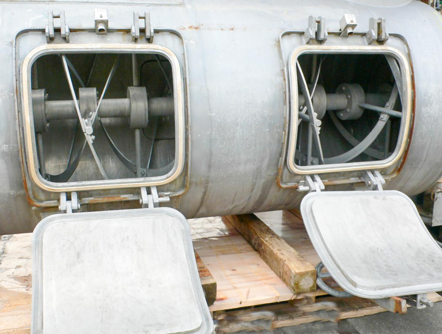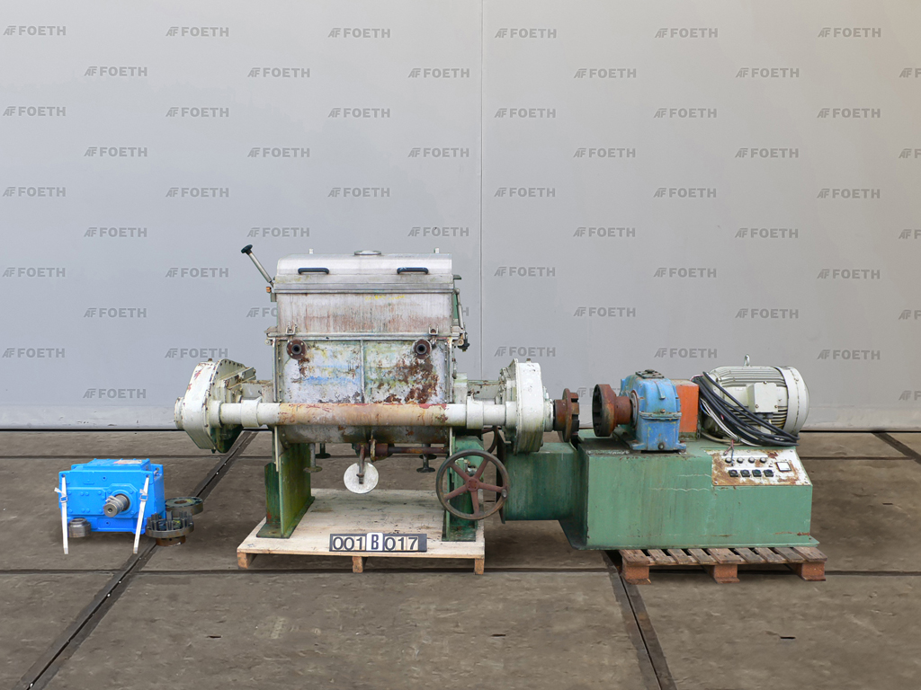 General SKU001B017 MakeHermann Linden GmbH Marienheide TypeK-IV 300 SP No.885 Year of construction1973 LocationBarneveld Main Features MaterialStainless steel Volume300 Ltr. Motor24 KW Specified Features - Z-blade mixer Z-blade mixer(1x) Capacity300 Ltr (useful) Trough sizes750x1000mm With covercheck With jacketcheck Double gearedcheck With adjustable packing glandscheck Motor16/24 KW, 500 Volt (Ex) Bottom outlet(2x dia. 200mm) MaterialStainless steel 1.4571 (316Ti) Information With switchcheck Floorspace3,6x1,6 M Total height1,5 M Weight2600 KG ATEX compatiblecheckCatalysts & fillersFeed additivesPaper & otherDiscountZ-blade mixersDetergent & surf.Other pharmaceuticsCosmeticsSugarLubricants & oleoAnimal feedOther feedSolid pharmaceuticsDyes & pigmentsMinerals & inorganicPlastic & polymersRubberOther chemicalStarchPowdered foodsPaints & coatingsOils & fatHerma ...