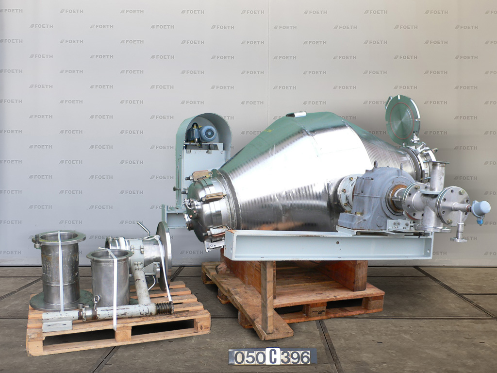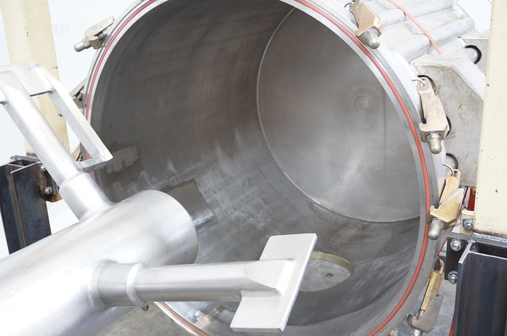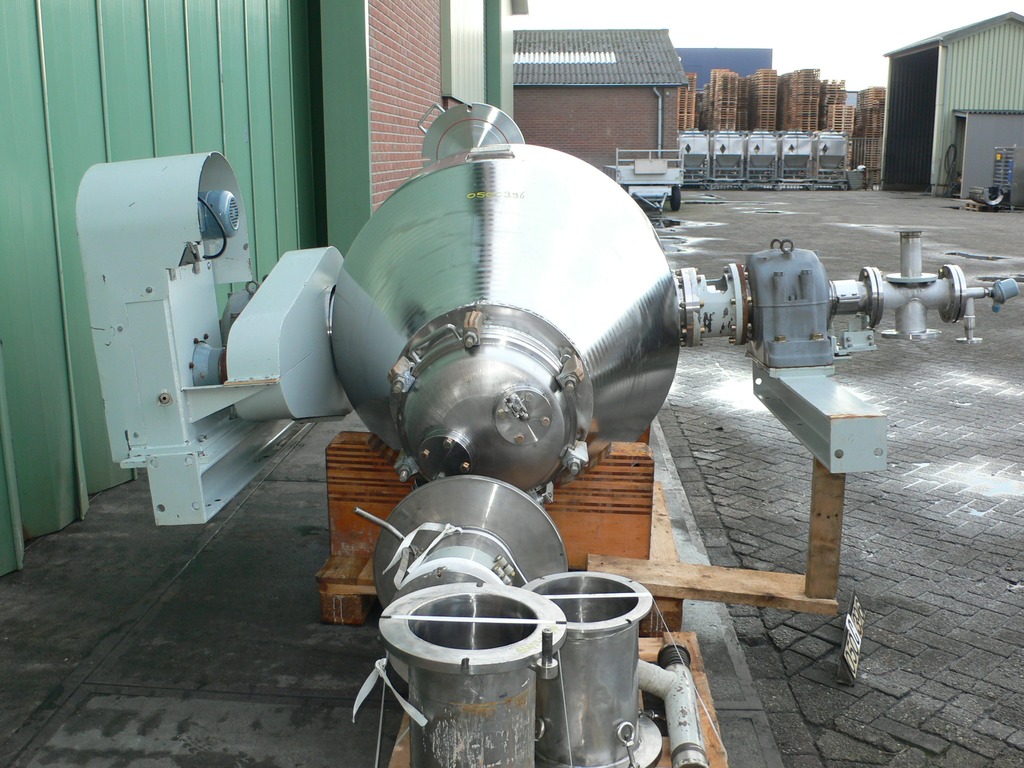 General SKU050C396 MakeEdak AG Dachsen No.1362 Year of construction1993 LocationBarneveld Specified Features - Tumbler dryer Material finishPolished inside Material Jacket materialStainless steel Pressure Working pressure0 Bar Vacuum possiblecheck Working pressure jacket6 Bar Main Features MaterialStainless steel Volume500 Ltr. Tumbler dryers Double cone tumbler dryer(1x) Capacity1145 Ltr, Useful capacity 500 Ltr Diameter1300mm Cylindrical length350mm Conical length775/600mm Inlet/manhole dia. 500mm Outletdia. 300mm With jacketcheck Max. temperature-30/+200 Degr. C. Motor± 0,75 KW MaterialStainless steel 1.4435 (316L) Information Floorspace3,3x2,5 M Total height1,6 MDiscountTumbler dryersEdak DachsenDiscountDryers > Tumbler dryersBrand > Edak Dachsen What you can expect from Foeth: -- Machine is in working condition -- At a reduced price compared to new - ...