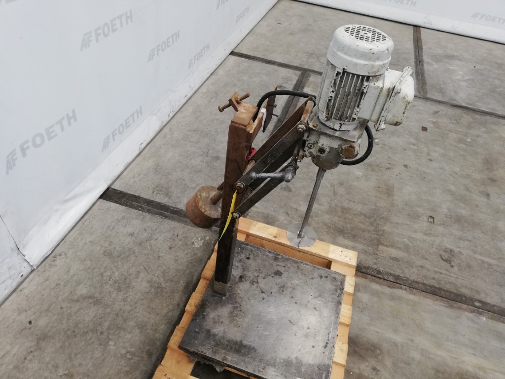 General SKU201T016 LocationBarneveld Main Features MaterialStainless steel Motor0.18 KW Length300 mm Specified Features - Stirrer Stirrercheck Dissolver stirrercheck Shaft length300 mm Sizes stirring headØ90x10 mm Number of stirrers on shaft1 Motor0.18 kW 220/380 (Ex) With variable speed driveNeuweg Variducer Speed mixing shaft0-10 rpm Mounted on supportcheck Adjustable heightcheck Information MakeUnknown, manufacturer plate is missing Floorspace0,7x0,5 m9 Total height1,1 m Weight80 Kg ATEX compatiblecheckStirrers-Mixers > StirrersBrand > - What you can expect from Foeth: -- Machine is in working condition -- At a reduced price compared to new -- Ready for shipping to any destination worldwide -- You are welcome to inspect the machine in Barneveld, The Netherlands. Please visit us in Barneveld for many more machines!