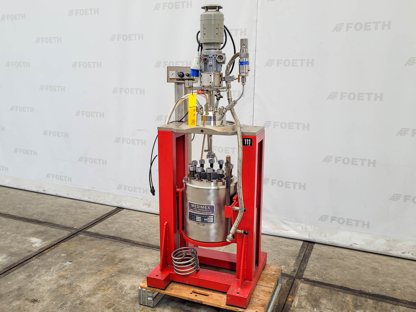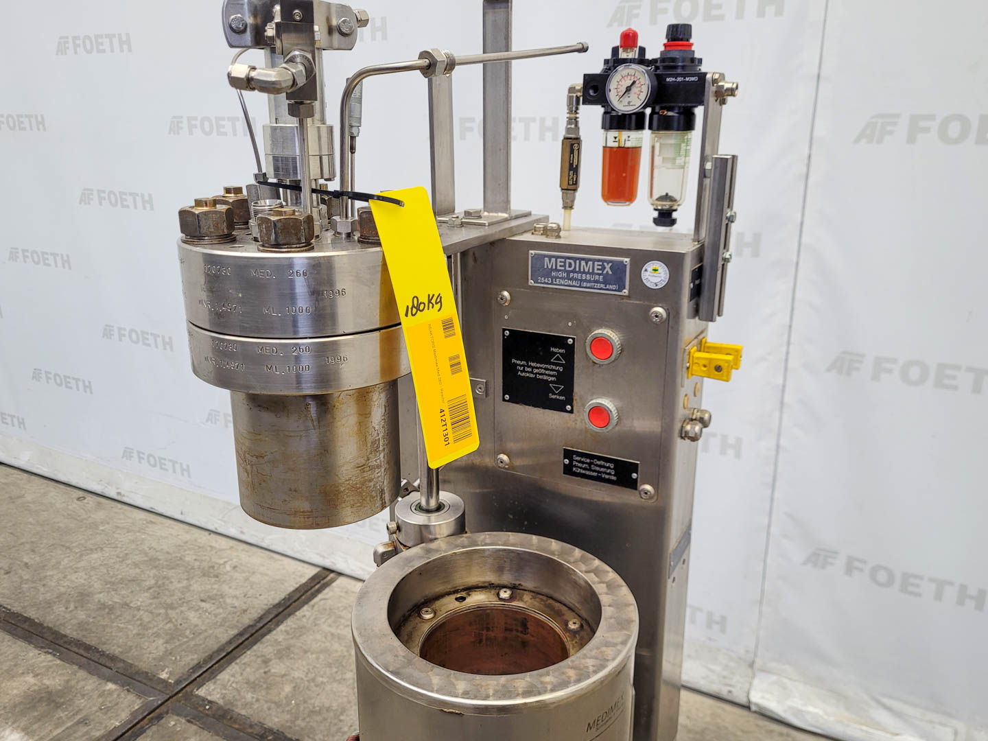 General SKU412T1301 LocationBarneveld MakeMedimex TypeMed. 260 No.170730 Pressure Working pressure300 Bar Main Features MaterialStainless steel Volume1 Ltr. Motor0.12 KW Specified Features - Stainless Steel Reactor Reactorcheck Capacity1 Ltr. Vessel sizes100x140 mm Top connections5/8 (2x), 3/4 (2x), 1/4 (2x) Half coil jacketedcheck Max. temperature300 °C With propellor stirrercheck Motor0,12 kW, 220-240/380-420 volt, 1390 rpm Stainless Steel Reactors MaterialStainless steel 1.4571 (316Ti) Information Year of construction1996 Mounted on legscheck Floorspace0,45x0,45 m Total height1,95 m Weight180 kg ATEX compatiblecheckCatalysts & fillersSolventsDetergent & surf.Other pharmaceuticsCosmeticsOrganicsLubricants & oleoStainless Steel ReactorsSolid pharmaceuticsDyes & pigmentsAPIMinerals & inorganicPlastic & polymersAgrochemicalsRubberOther chemicalFine chemicals ...