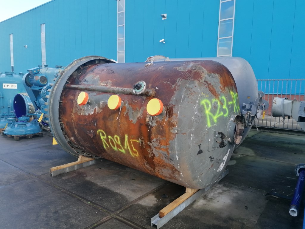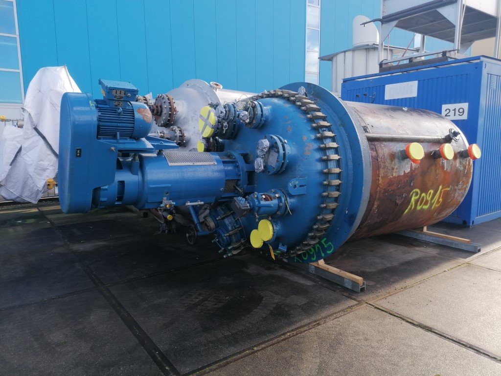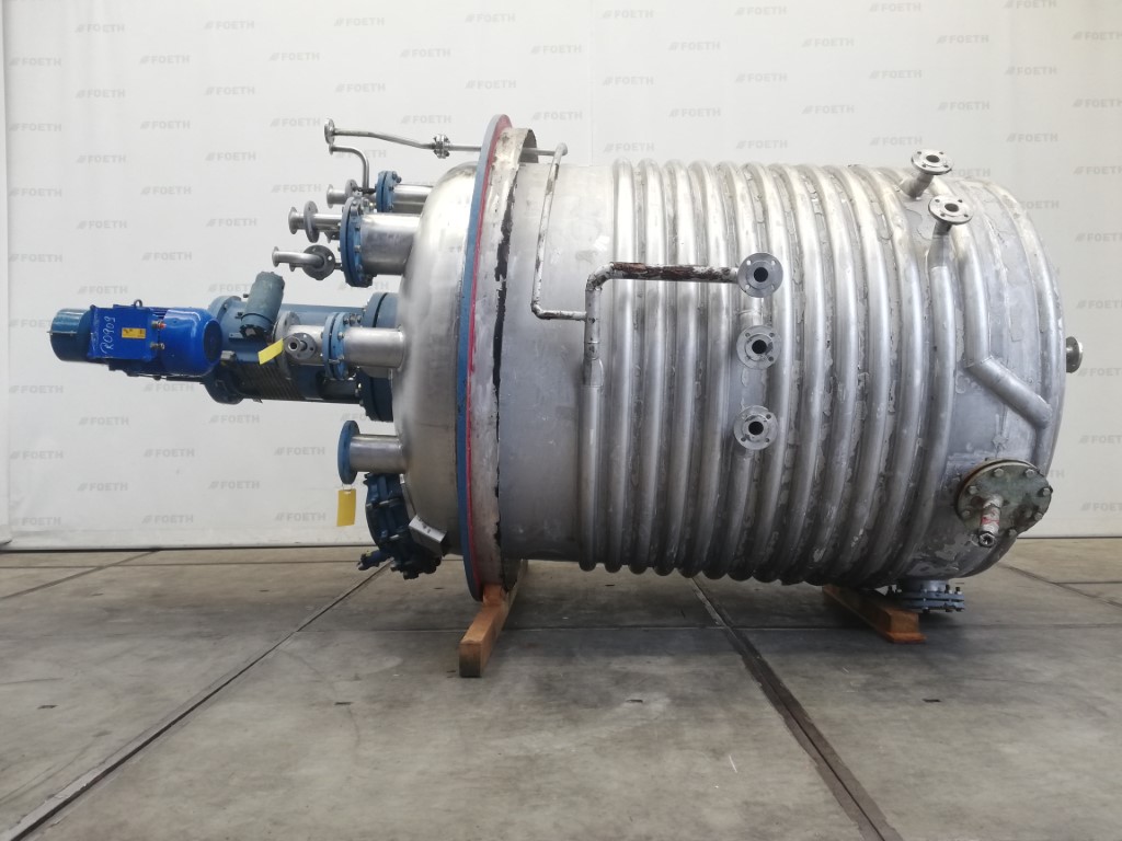 General SKUR0909 LocationBarneveld MakePaul Schwingel GmbH (DE) Type6300 ltr. Pressure Working pressure3.2 Bar Vacuum possiblecheck Working pressure jacket16 Bar Main Features MaterialStainless steel Volume6300 Ltr. Motor15 KW Specified Features - Stainless Steel Reactor Reactorcheck Capacity8560 ltr ( nett 6300 ltr. ) Vessel sizesdia. 2000x3050mm Dished bottomcheck Dished top sidecheck ManholeDN600 Top connections5x DN150, 2x DN250 OutletDN150 Half coil jacketed(350 ltr) Max. temperature-30/200 Degr.C With paddle stirrerEkato HWL 100-D Motor15 kW, 380 Volt, (EX) Speed mixing shaft69 rpm Stainless Steel Reactors MaterialStainless steel 1.4435 (316L), Stainless steel 1.4541 (321) Information No.8880-3 Year of construction1989 Floorspace2,4x2,4 M Total height4,9 M Weight5000 Kg ATEX compatiblecheckCatalysts & fillersSolventsDetergent & surf.Other pharmac ...