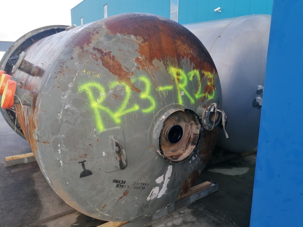 General SKUR0915 MakeTechnoglass (vessel) / Tycon (top part) (Ita) Type5445 ltr LocationBarneveld Pressure Working pressure6 Bar Vacuum possiblecheck Working pressure jacket6 Bar Vacuum possible jacketcheck Main Features MaterialGlass Volume7260 Ltr. Motor15 KW Specified Features - Glass-lined Reactor Reactorcheck Capacity7260 ltr Vessel sizesdia. 1800x3190mm Dished bottomcheck Dished top sidecheck Manholedia. 500mm Top connectionsDN150 (5x) DN250 (2x) Outletdia. 100mm With jacket710 ltr Max. temperature-30/200 Degr.C With paddle stirrercheck Motor15 kW 380 Volt (Ex) Glass Reactors MaterialGlass - Enamel Information No.5745 / 2705 Year of constructionvessel part 1996/ top part 1985 Floorspace2,3x2,3 M Total height5,9 M Weight9000 Kg ATEX compatiblecheck Extra SpecificationsClamped topCatalysts & fillersSolventsDetergent & surf.Other pharmaceuticsCosme ...
