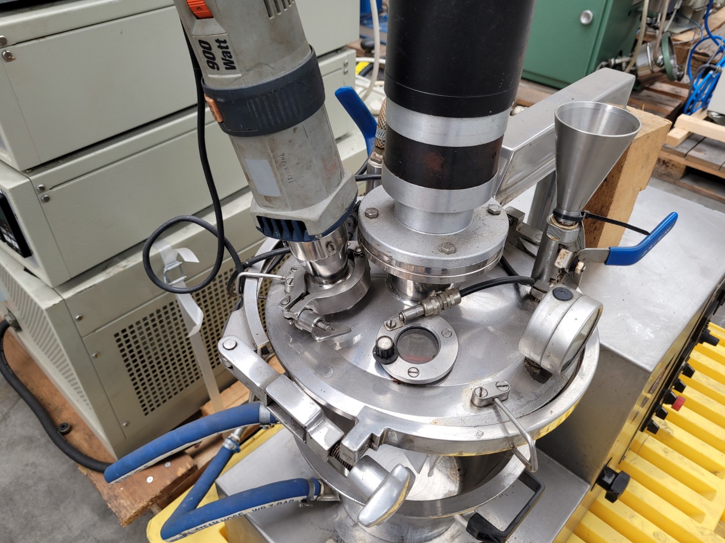General SKU001A025 MakeDraiswerke GmbH Mannheim TypeT-100 No.43938 Year of construction1971 Mounted on framecheck Pressure Vacuum possiblecheck Main Features MaterialStainless steel Volume100 Ltr. Motor5 KW Specified Features - Powder turbo mixer MaterialStainless steel 1.4571 (316Ti) Powder turbo mixercheck T-armscheck Capacity100 l Trough sizesø 500 x 570 mm Inspection hatch235x360mm Outletdia. 120 mm With jacketcheck With adjustable packing glandscheck Motor5,0 kW (380V, 1460 rpm) With variable speed drivecheck Speed mixing shaft50 -200 rpm Information LocationBarneveld Floorspace1,9 x 1,5 m Total height1,5 m Weight750 kgCatalysts & fillersFeed additivesOther pharmaceuticsCosmeticsFood additivesSugarAnimal feedOther feedConfectionerySolid pharmaceuticsDyes & pigmentsMinerals & inorganicSpicesPowder turbo mixersOther chemicalStarchTea, herbs & coffeeGene ...