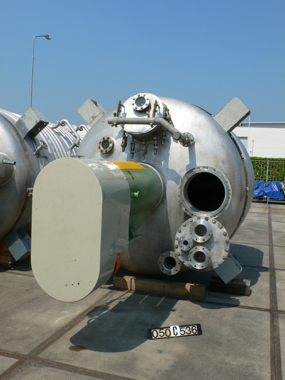 General SKU050C536 MakeAlpha AG Nidau No.10812 Year of construction1984 LocationBarneveld Pressure Working pressure6 Bar Vacuum possiblecheck Working pressure jacket13 Bar Main Features MaterialStainless steel Volume11600 Ltr. Motor10.5 KW Specified Features - Stainless Steel Reactor Reactor(1x) Capacity11.600 Ltr Vessel sizesdia. 2400x2400mm Dished bottomcheck Dished top sidecheck Manholedia. 450mm Top connections2x dia. 500mm + 4x dia. 150mm Outletdia. 80mm Half coil jacketed(293 Ltr) Max. temperature-30/+200 Degr. C. With propellor stirrerImpeller Motor11,5/15,0 KW, 500 Volt (Ex) Speed mixing shaft22/45 rpm Stainless Steel Reactors MaterialStainless steel 1.4435 (316L) Information Floorspace2,5x2,5 M Total height6,5 M ATEX compatiblecheckCatalysts & fillersSolventsDiscountDetergent & surf.Other pharmaceuticsCosmeticsOrganicsLubricants & oleoStainless ...