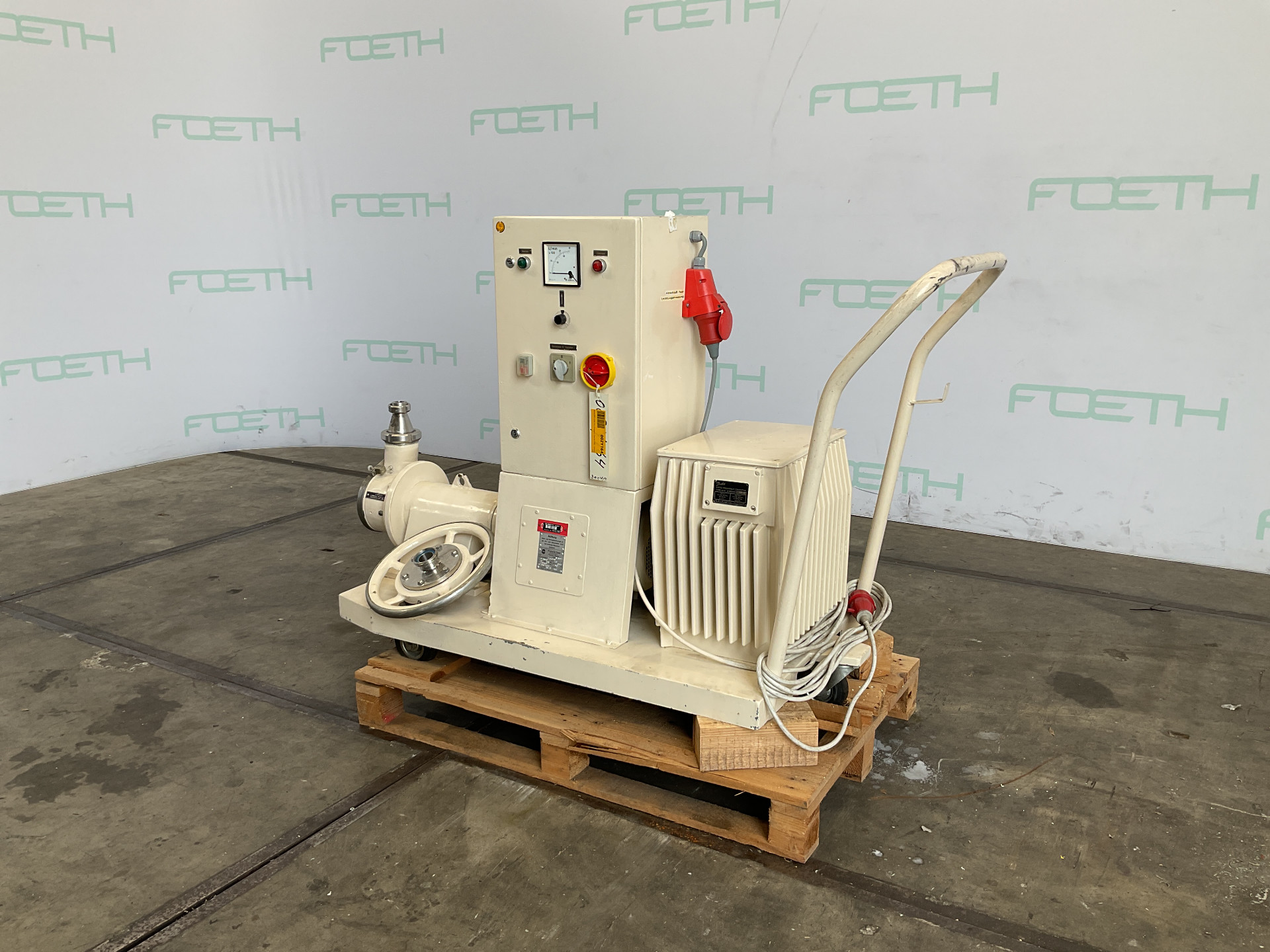 General SKU002Y164 MakePUC Probst & Class TypeN-100E No.74099 LocationBarneveld Material Housing materialStainless steel Rotor materialStainless steel Main Features MaterialStainless steel Motor4 KW Inlet diameter50 mm Specified Features - Colloid mill MaterialStainless steel Colloid mill in line(1x) Rotor sizesø 100mm Cross teethed rotorcheck Motor4,0 kW, (380 V, 2880 rpm) With variable speed drive(frequency converter) Speed100- 2880 rpm Information Mounted on wheelscheck With switchcheck Floorspace1,7 x 0,7 m Total height1,1 m Weight300 kgDiscountColloid millsPuc Probst & ClasDiscountMills > Colloid millsBrand > Puc Probst & Clas What you can expect from Foeth: -- Machine is in working condition -- At a reduced price compared to new -- Ready for shipping to any destination worldwide -- You are welcome to inspect the machine in Barneveld, The Netherlands. Ple ...