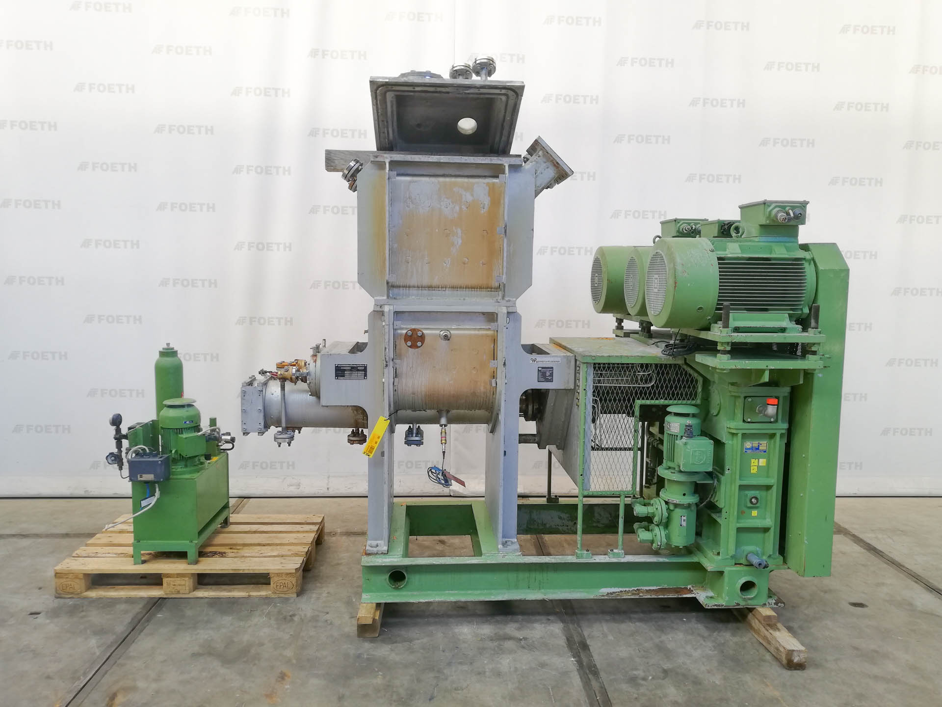 General SKU402S948 MakeWerner & Pfleiderer (DE) LocationBarneveld TypeUK80 AES Pressure Working pressure6 Bar Vacuum possiblecheck Main Features MaterialStainless steel Volume80 Ltr. Motor30 KW Specified Features - Z-blade mixer Z-blade mixercheck Capacity80 Ltr. With covercheck With jacketcheck Max. temperature180 °C Arms can be heated/cooledcheck Double gearedcheck Motor30 kW 500 V 1450 rpm (Ex) Arm speed20-40 rpm With hydraulic unitcheck Screw dischargecheck Motor11/18 kW 500V Ex With variable speed drivecheck Screw speed750-1500 rpm MaterialStainless steel Information No.229808 Year of construction1990 Mounted on framecheck Floorspace2,6 x 1,7 m Total height2,3 m Weight5000 kg ATEX compatiblecheckCatalysts & fillersFeed additivesPaper & otherZ-blade mixersDetergent & surf.Other pharmaceuticsCosmeticsSugarLubricants & oleoAnimal feedOther feedSolid ...