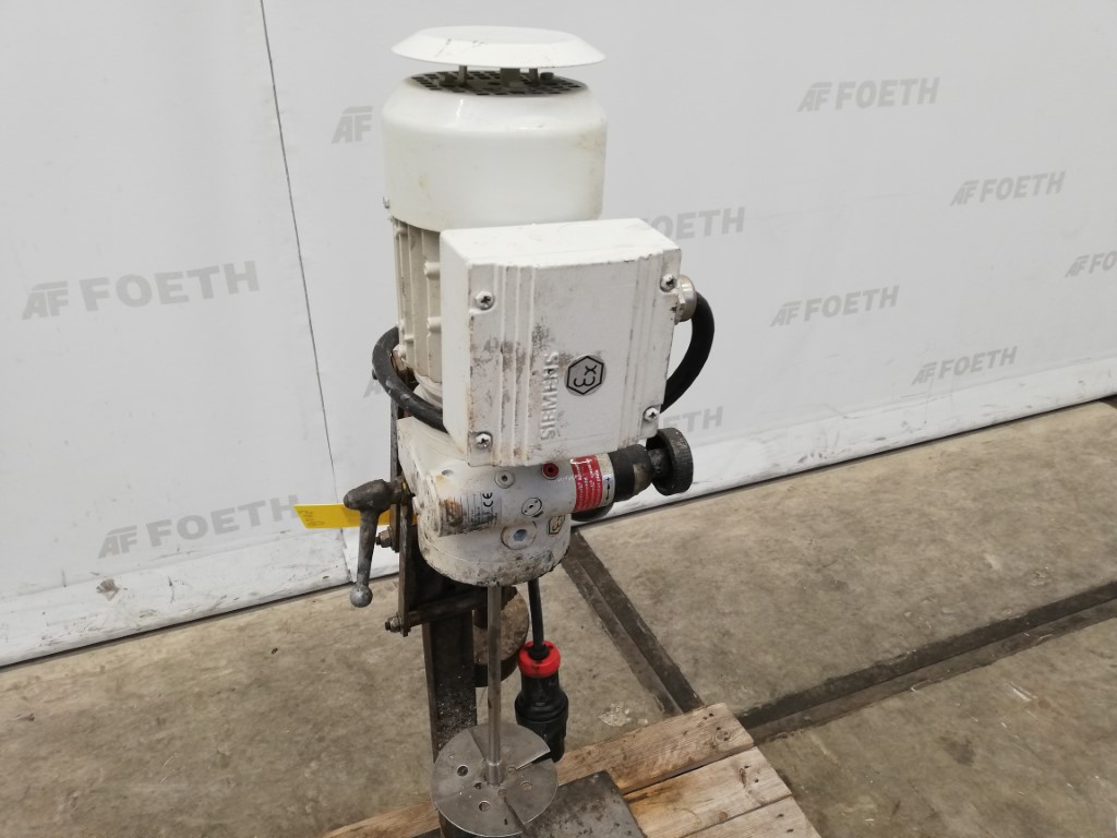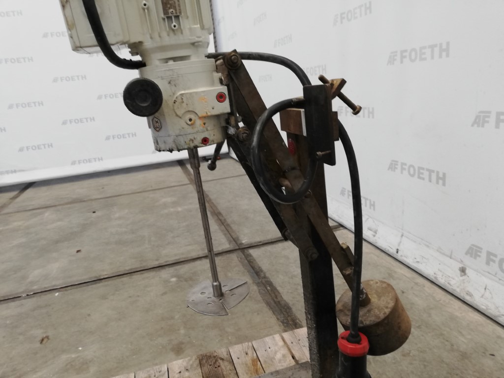 General SKU201T015 MakeUnnown, manufacturer plate is missing LocationBarneveld Main Features MaterialStainless steel Motor0.25 KW Length300 mm Specified Features - Stirrer Stirrercheck Dissolver stirrercheck Shaft length300 mm Sizes stirring headØ125x13 mm Number of stirrers on shaft1 Motor0.25 kW 230/400 Volt (Ex) With variable speed drivecheck Speed mixing shaft0-600 rpm Mounted on supportcheck Adjustable heightcheck MaterialStainless steel Information Floorspace0,7x0,5 m Total height1,1 m Weight80 Kg ATEX compatiblecheckStirrers-Mixers > StirrersBrand > - What you can expect from Foeth: -- Machine is in working condition -- At a reduced price compared to new -- Ready for shipping to any destination worldwide -- You are welcome to inspect the machine in Barneveld, The Netherlands. Please visit us in Barneveld for many more machines!